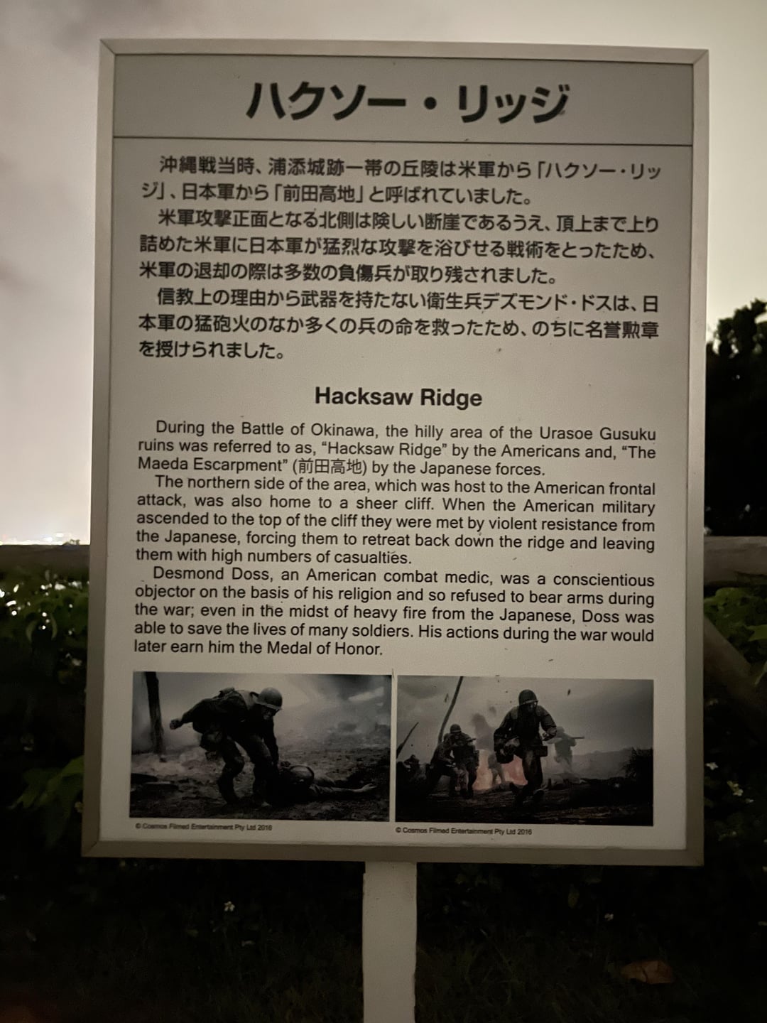 OOkinawa Hacksaw Ridge March 31, 2025 Concluding my time in Okinawa I decided to photograph Hacksaw Ridge again with some photographed at night. Such a beautiful yet eerie sight. Once I recover my photos on film I will post. by camokowal Tags:Okinawa Leave a ReplyYou must be logged in to post a comment.