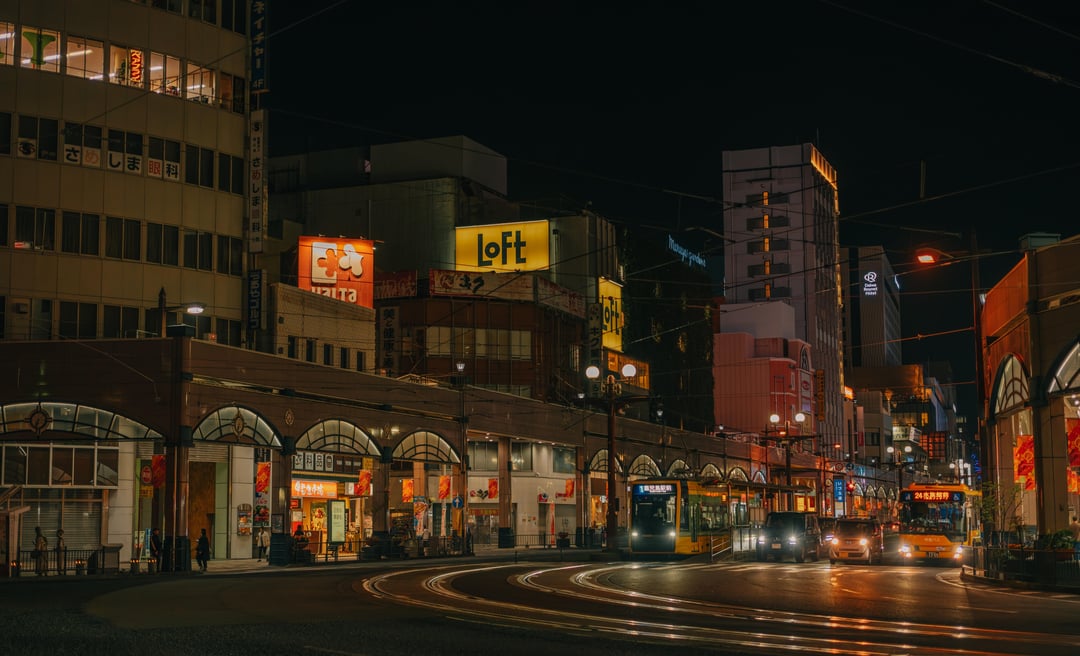 As golden hour set in, we explored the streets of Kagoshima, capturing the warm light falling on trams, storefronts, and quiet lanes. Later, we headed up to the Shiroyama Observation Deck, where we watched the sun dip behind Sakurajima, turning the sky from orange to deep indigo as dusk settled over the city. To end the evening, we treated ourselves to a delicious dinner of kurobuta black pork, Kagoshima’s famous local specialty. The perfect finish to the day.