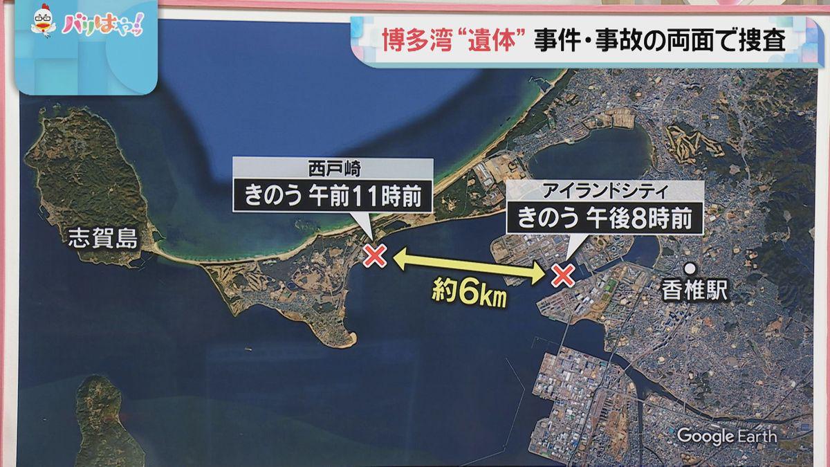 Body parts found in two locations around Hakata Bay; locations of the two discoveries are about 6 kilometers apart (