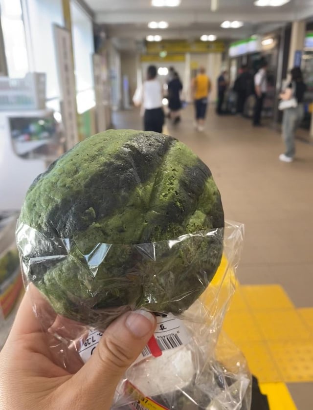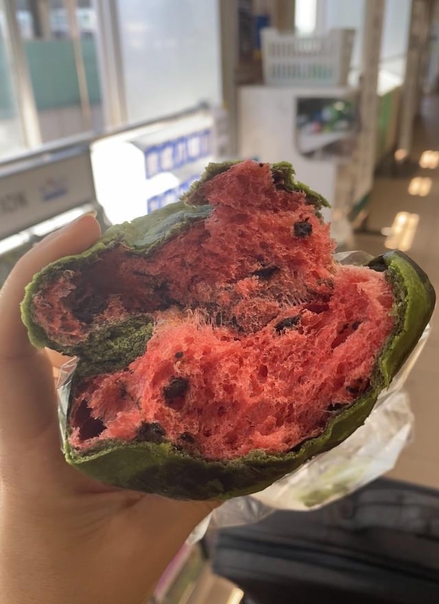 It’s similar to melon pan, but with a watermelon flavor and little chocolate drops inside.