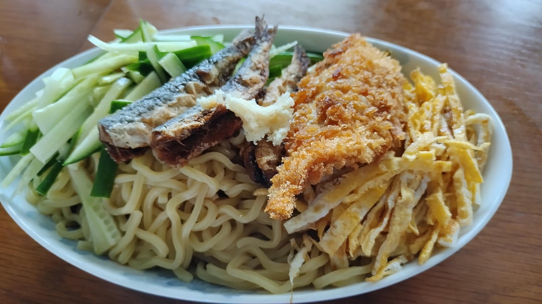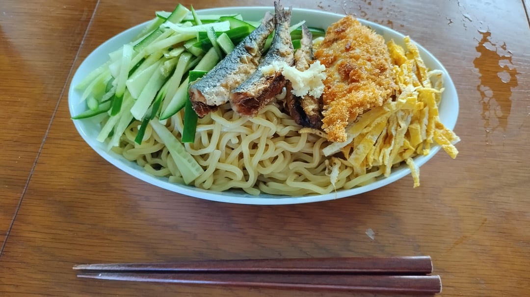 JJapanese Food Hiyashi Chuka (cold chinese noodles and white fish version) August 22, 2025 Normally, the fresh ham is used instead of fish. But it is better to add some fish. Sardines and yellowtail. by TanzawaMt Tags:Japanese CuisineJapanese Food