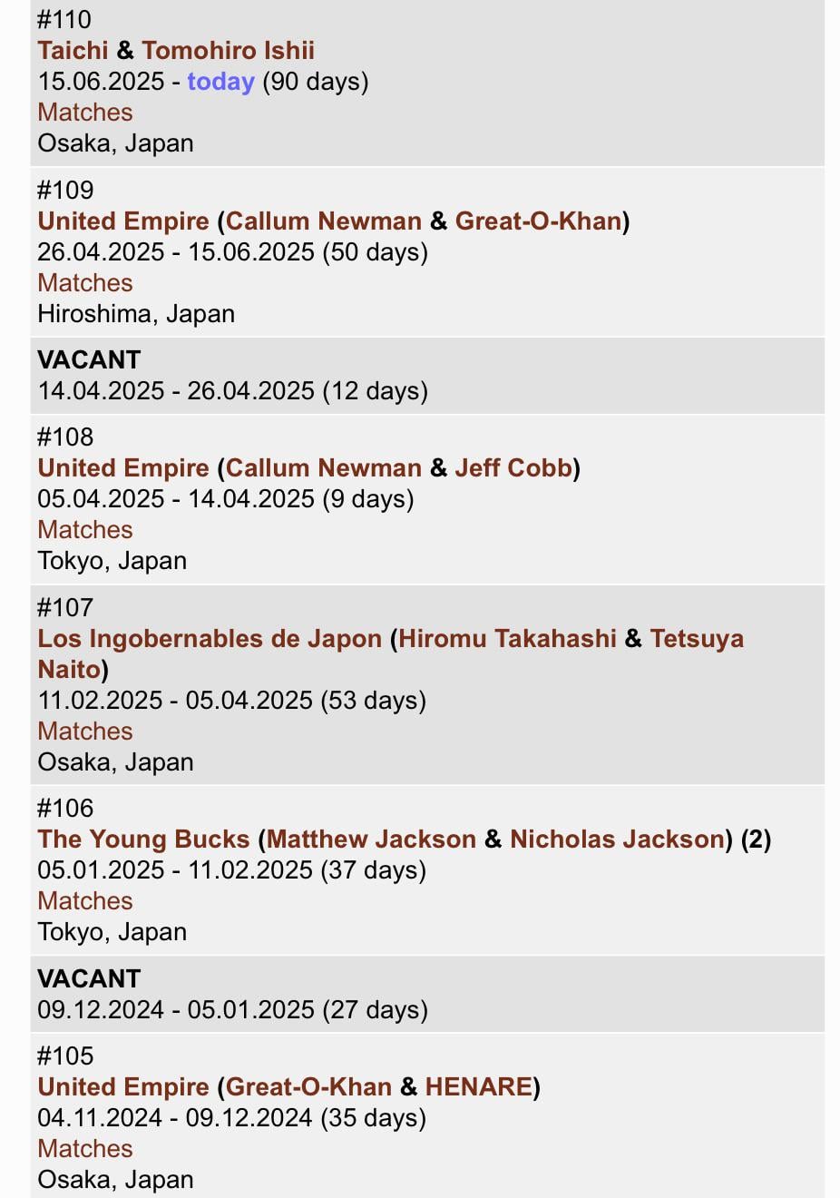 I was just checking cagematch when I realised this fact 6/5 1/2 reigns yet no successful defences since TMDK were champs