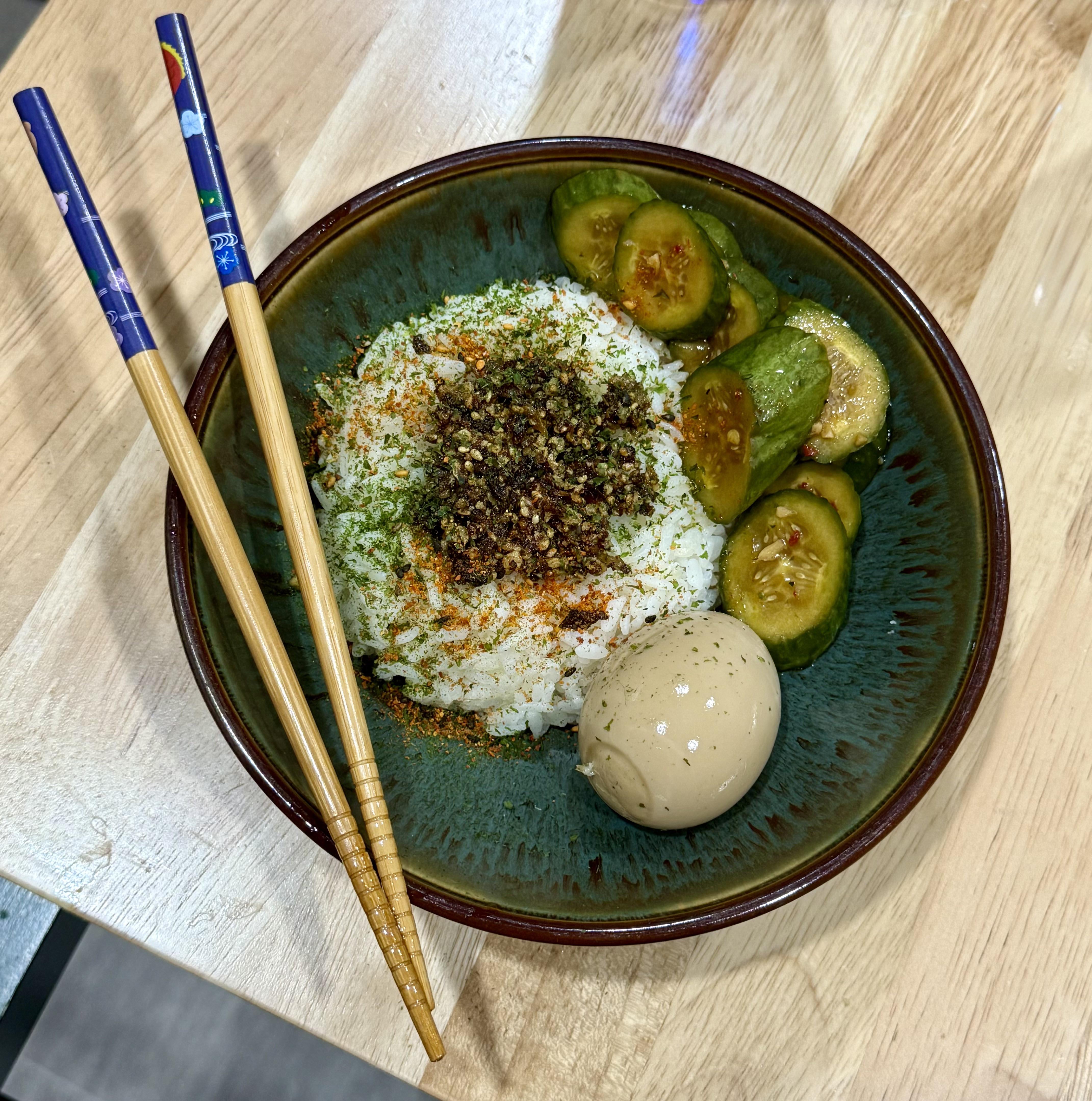JJapanese Food The Perfect Snack September 18, 2025 Sakusaku, togarashi, aonori on the rice. Ajitama and cucumber salad on the side. by whiskybingo Tags:Japanese CuisineJapanese Food