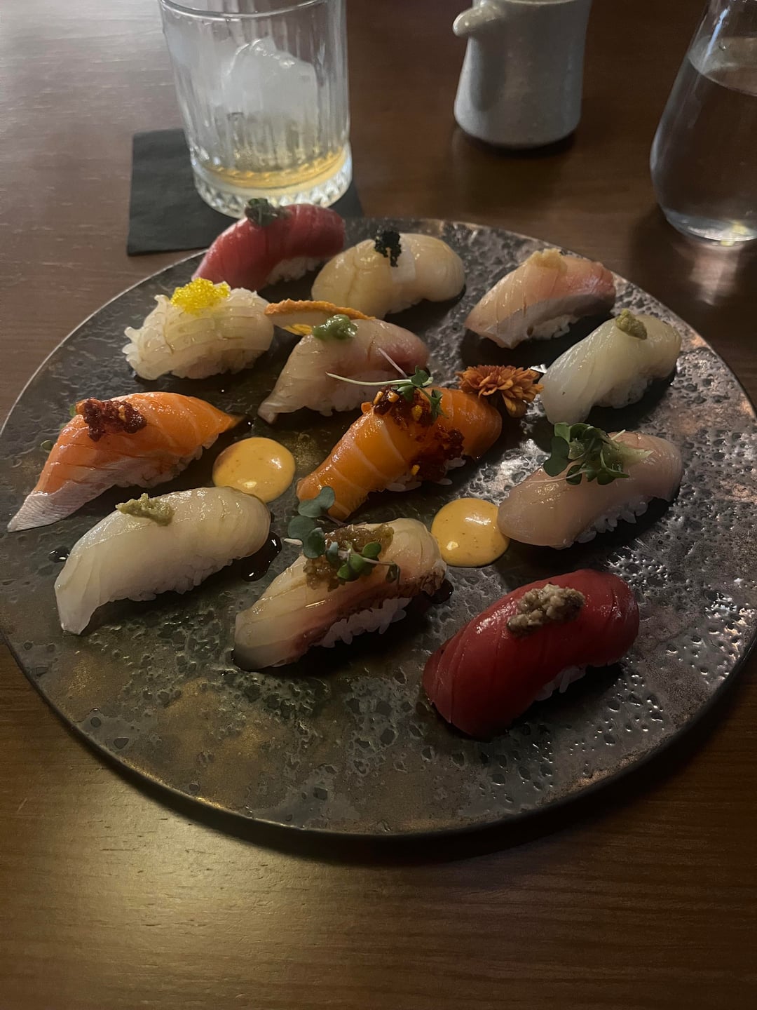 Fukuro in Evans, GA, a suburb of Augusta. Eaten here a few times now and finally thought to post tonight. In an area that is generally not impressive for the food and bev scene, this gem has been open for close to a year now, and is top notch for a southeast US sushi experience. $16 scallop carpaccio and $58 nigiri platter with a nice range of cuts and accoutrements.