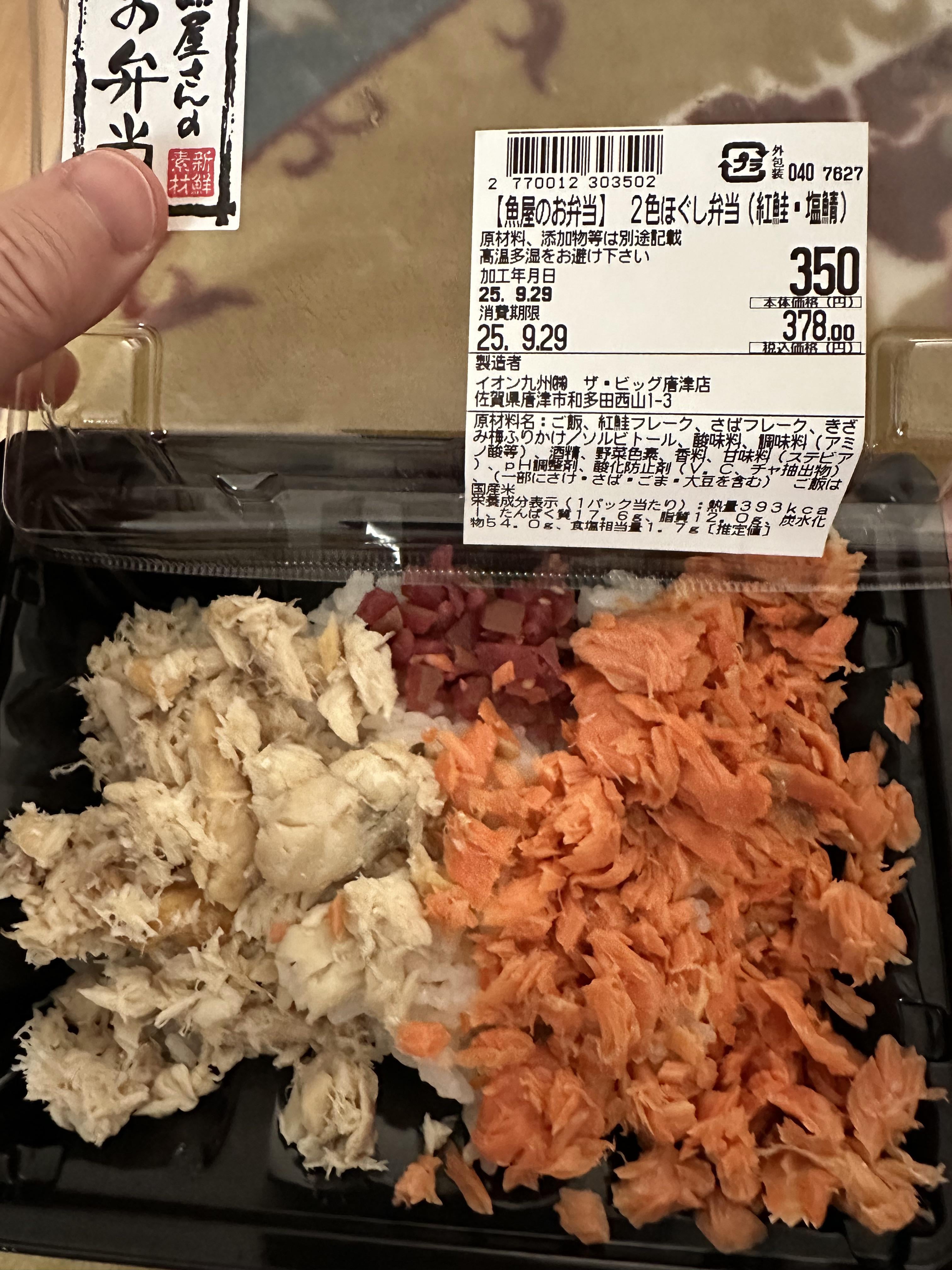 Don’t know why they call it 2 color, when there’s chopped umeboshi in there. Anyway… Maybe about $2.50usd.