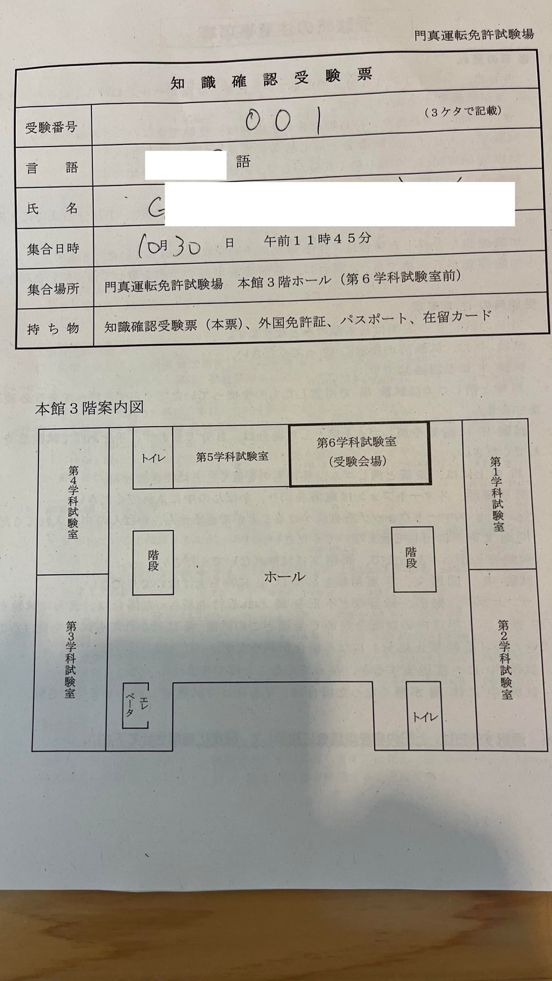 - Knowledge confirmation slip (知識確認受験票)