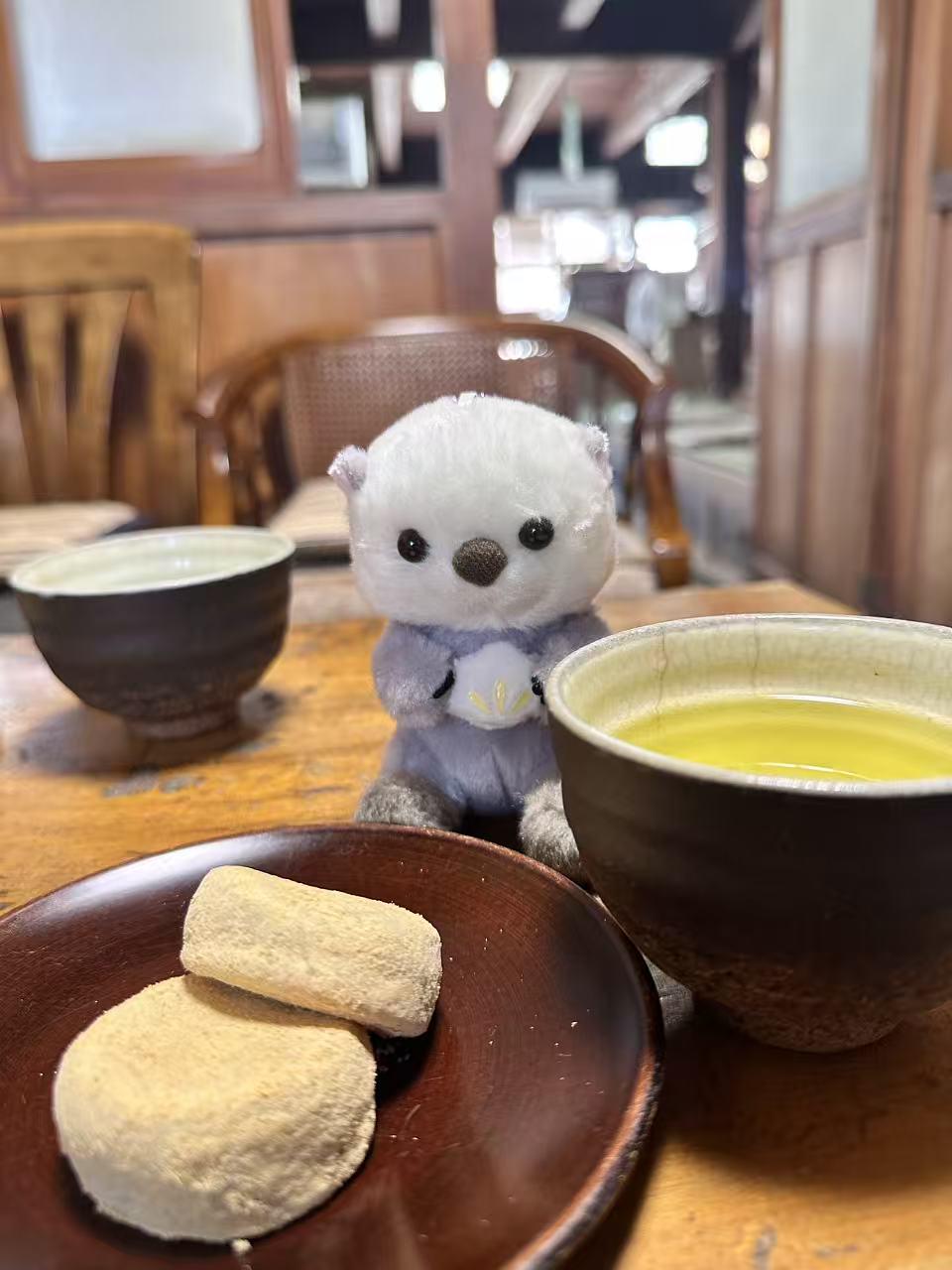 I really love this kind of Japanese dessert with green tea, enjoyed in a little traditional style house.