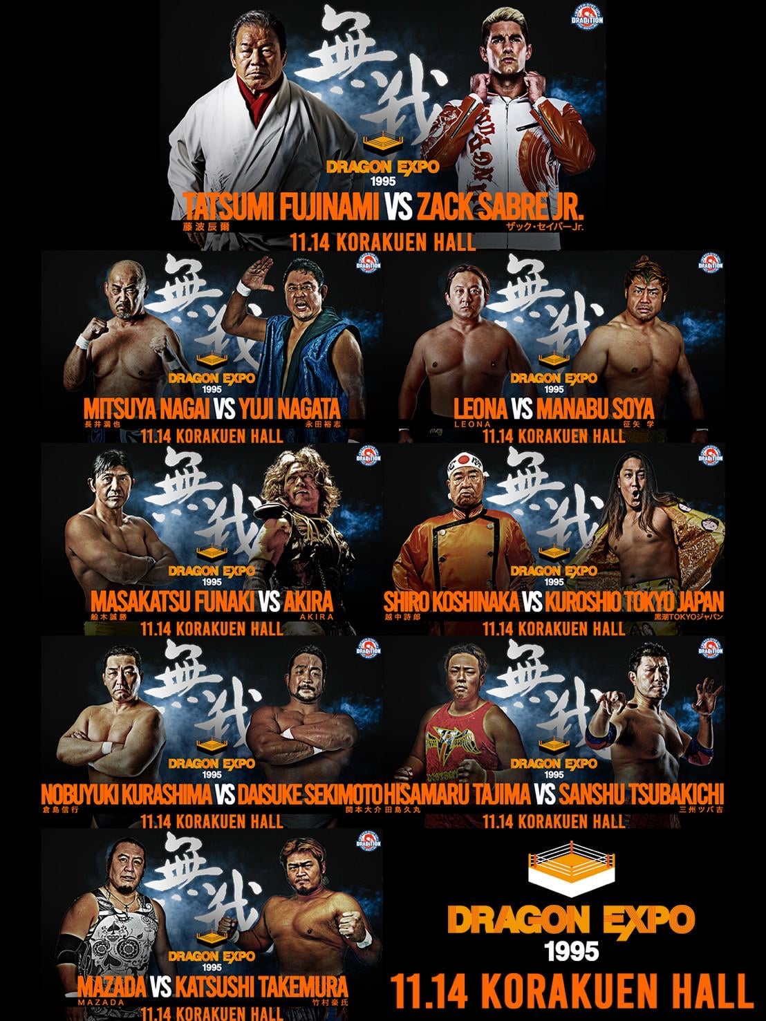 Full Event Card for Dradition’s November 14th show at Korakuen Hall.