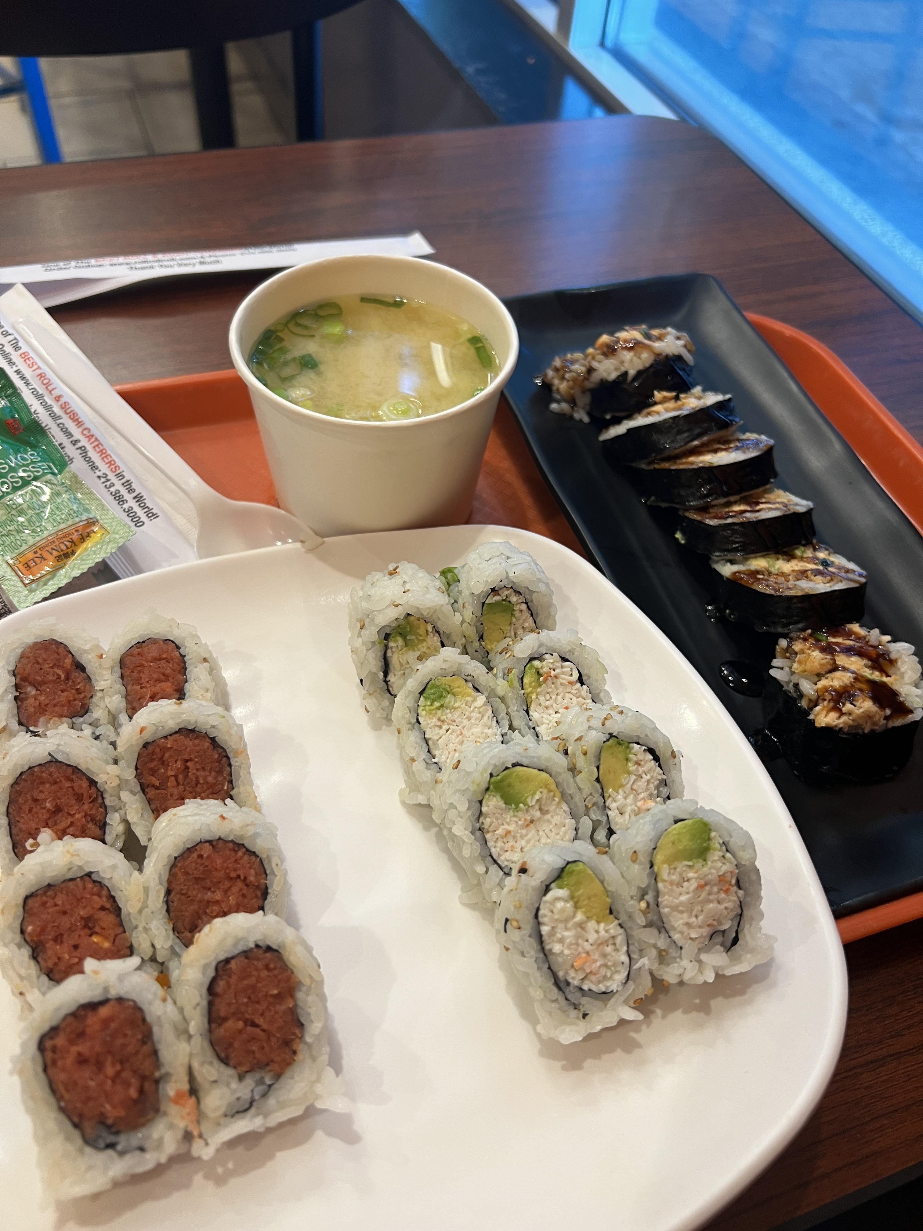 SSushi Great for $20 October 10, 2025 Traveling and found a little spot in LA – roll roll roll. Spicy tuna, California, baked salmon, and free miso! Fresh fish and good portions for $20 out the door with drinks. by _4string Tags:Sushi