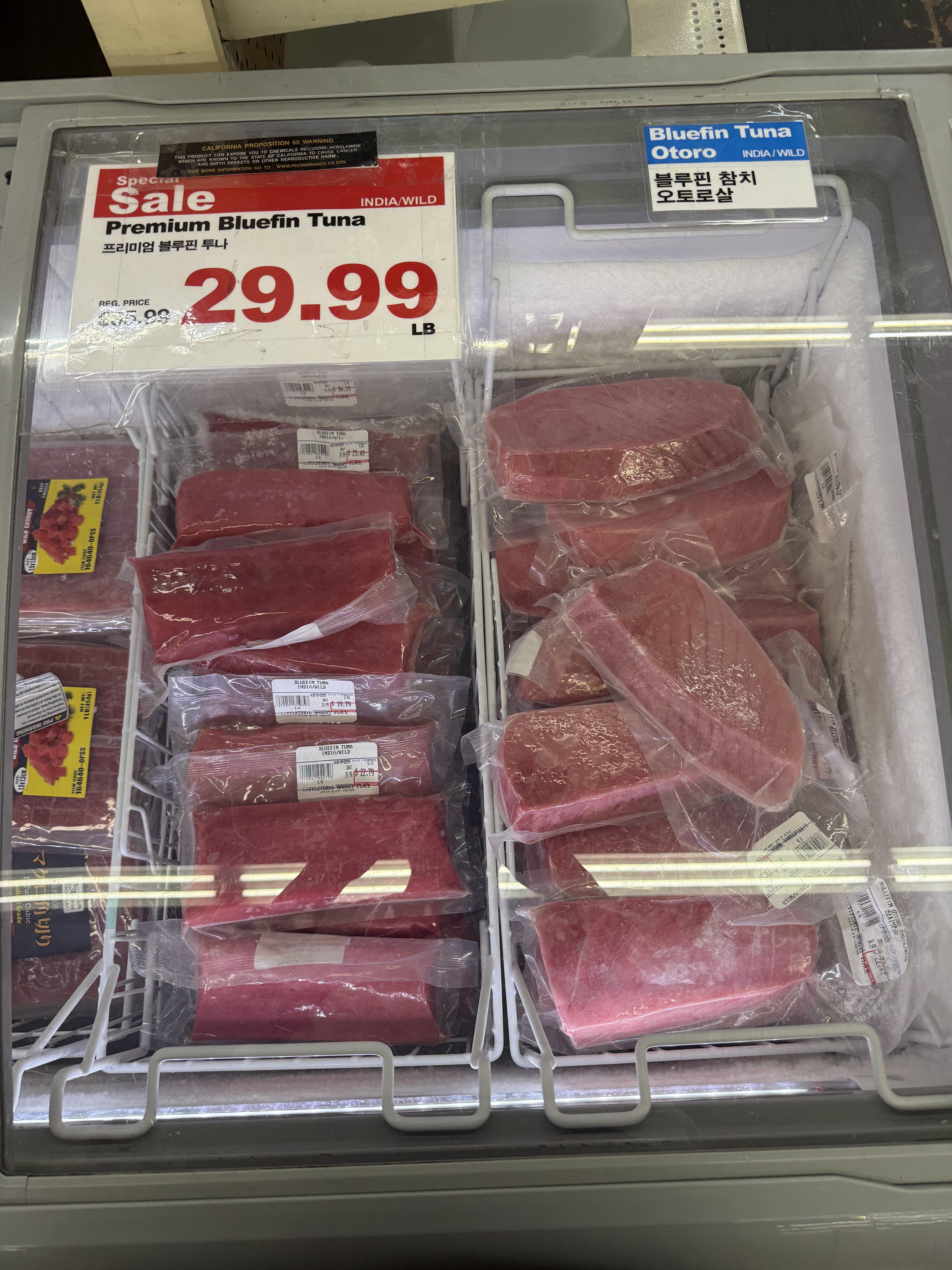 I’m hosting a hand roll dinner party for a bunch of college students this weekend and was thinking of picking up this frozen tuna from my local Korean supermarket since the cuts in the sashimi section are close to double the price. The bags are dated early September they’re about a month old at this point.