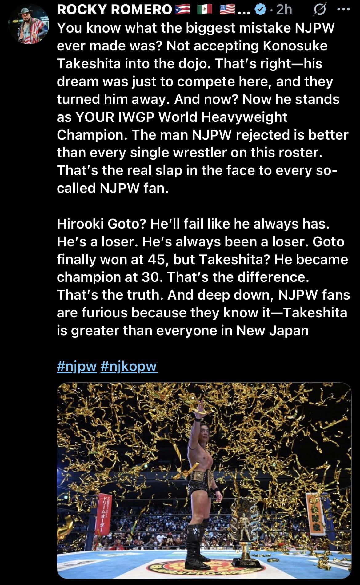 [NJPW Spoilers] Rocky Romero speaks out on twitter following the KOPW Main Event