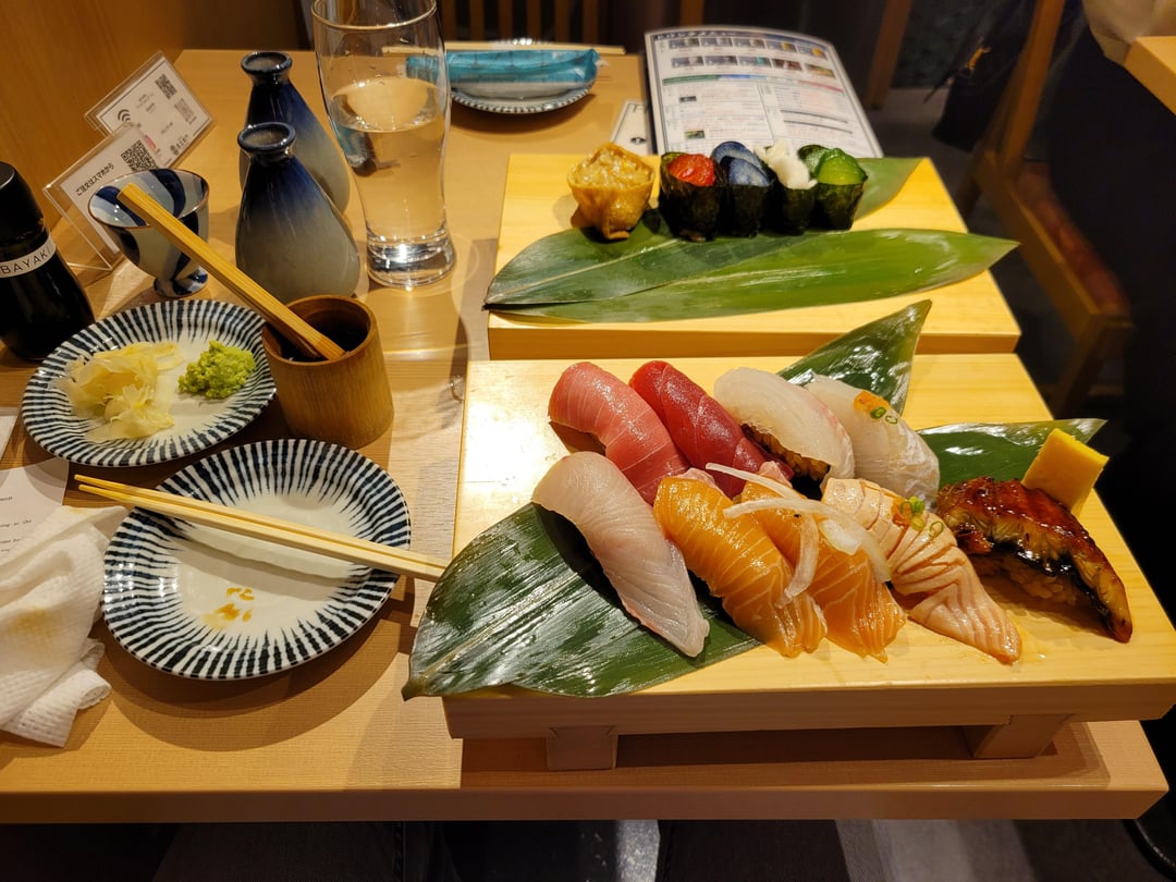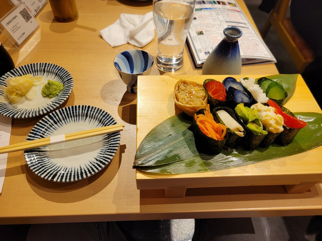 SSushi Sushi at Pontocho Alley, Kyoto October 21, 2025 So tasty. Sorry I forgot the name of the restaurant. I liked that they had so many vegetarian options too. by Sordonir Tags:Sushi