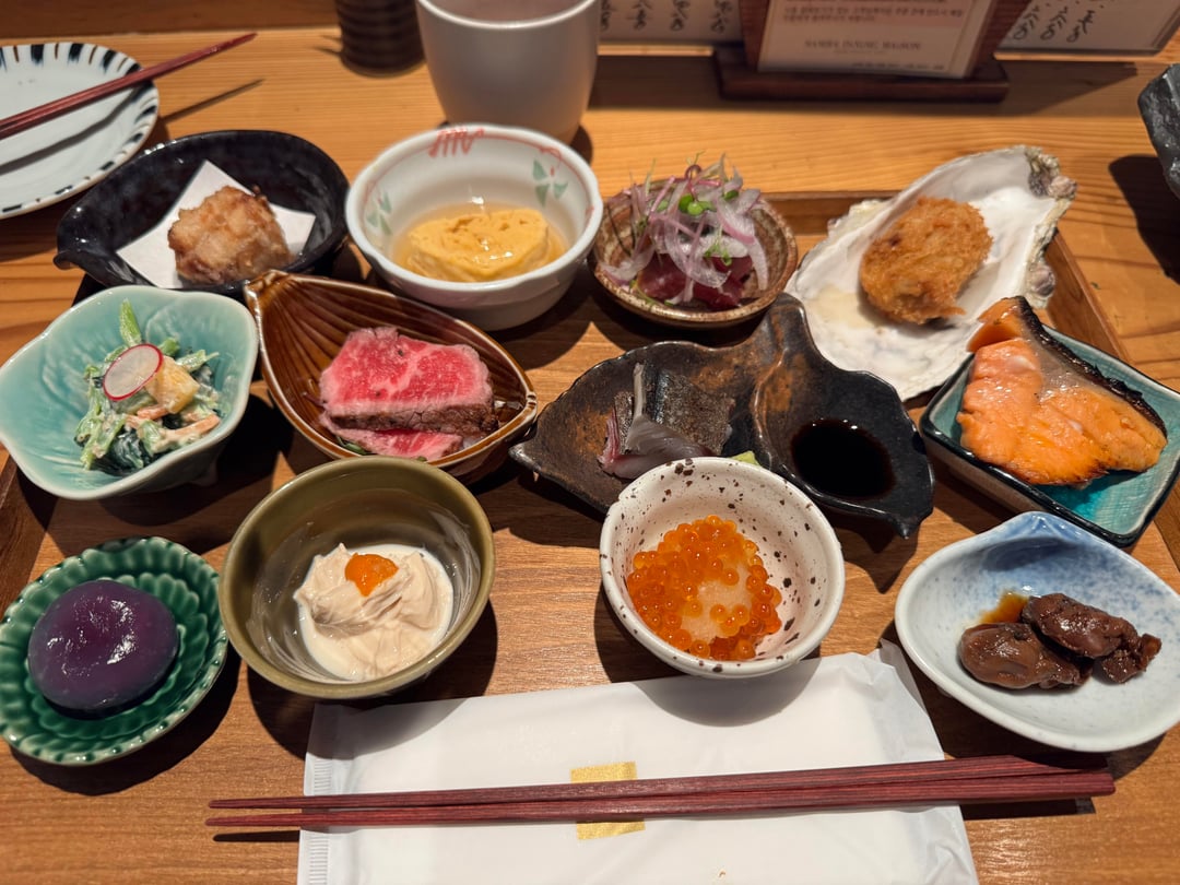 JJapanese Food Robata no Sato Osaka Nanba 炉端の佐藤 大阪難波店 November 3, 2025 9th floor of Takashimaya dept store. Forgot to take a pic of the yaki onigiri. by WrongOnEveryCount Tags:Japanese CuisineJapanese Food 1 comment Whats the purple dish on the bottom left? Comments are closed.