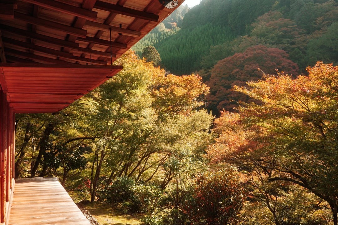 I know this area. Near Momiji-ya ryokan. In the mountains of Kyoto. It is only accessible by a bus about an hour ride up into the mountains. Three temples up there with nobody around. Kosan-ji, Saimyo-ji, and Jingo-ji.