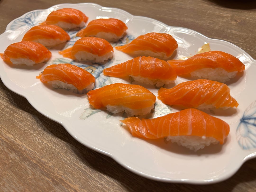 SSushi homemade salmon (sake) nigiri November 7, 2025 first time making sushi, was delicious! by peanut_gallery469 Tags:Sushi