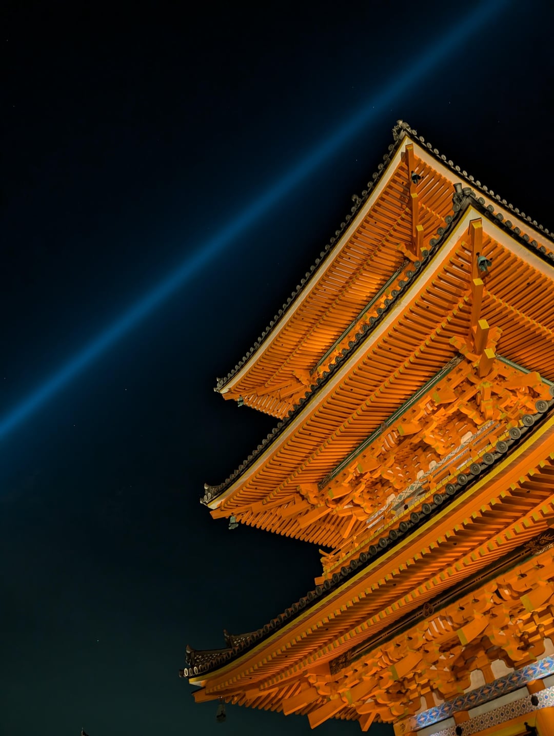 1) Kiyomizu-Dera (They shoot a searchlight into the sky for the picture)