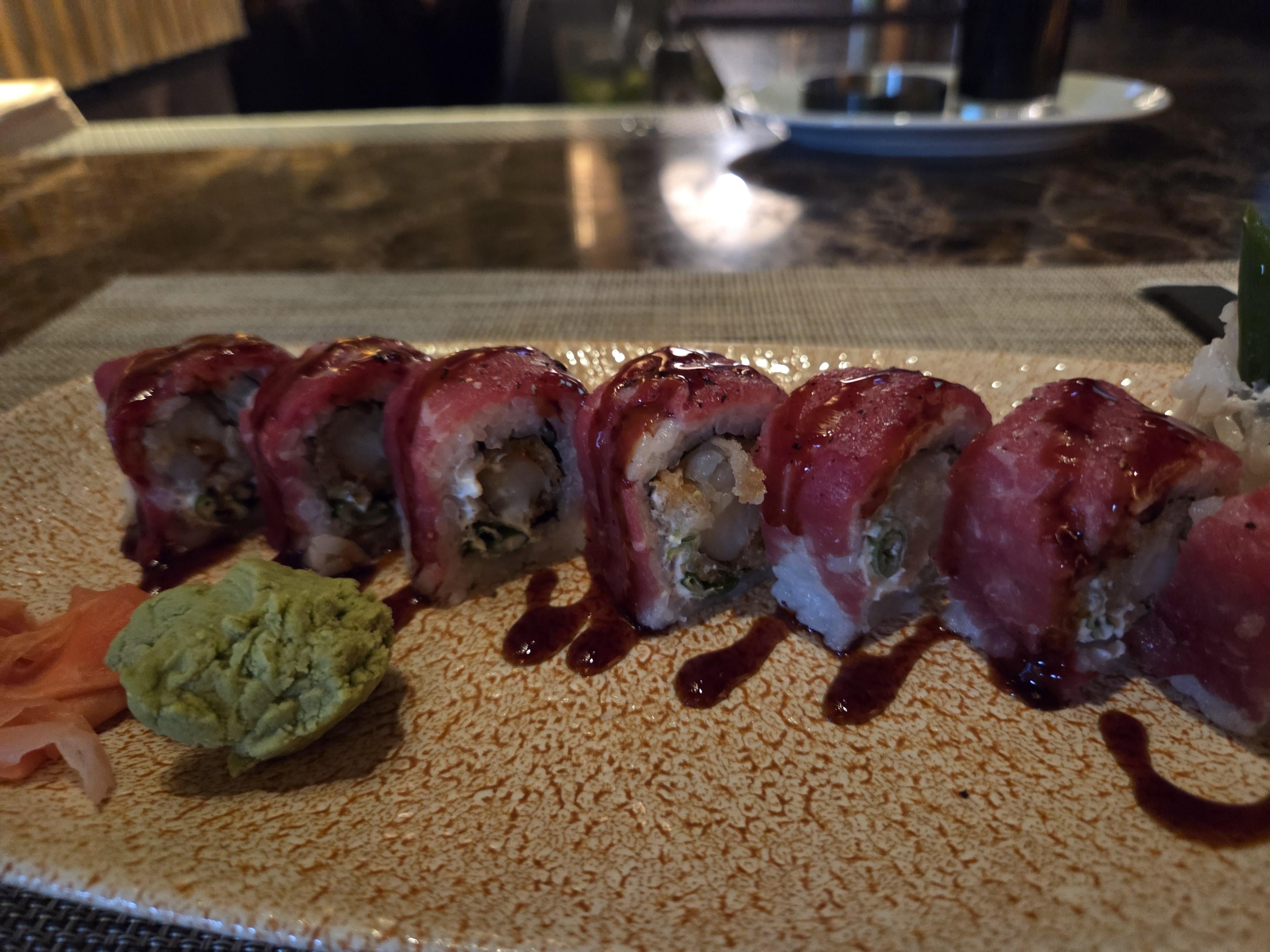 Tempura Shrimp, Beef Carpaccio, Cream Cheese, Scallion