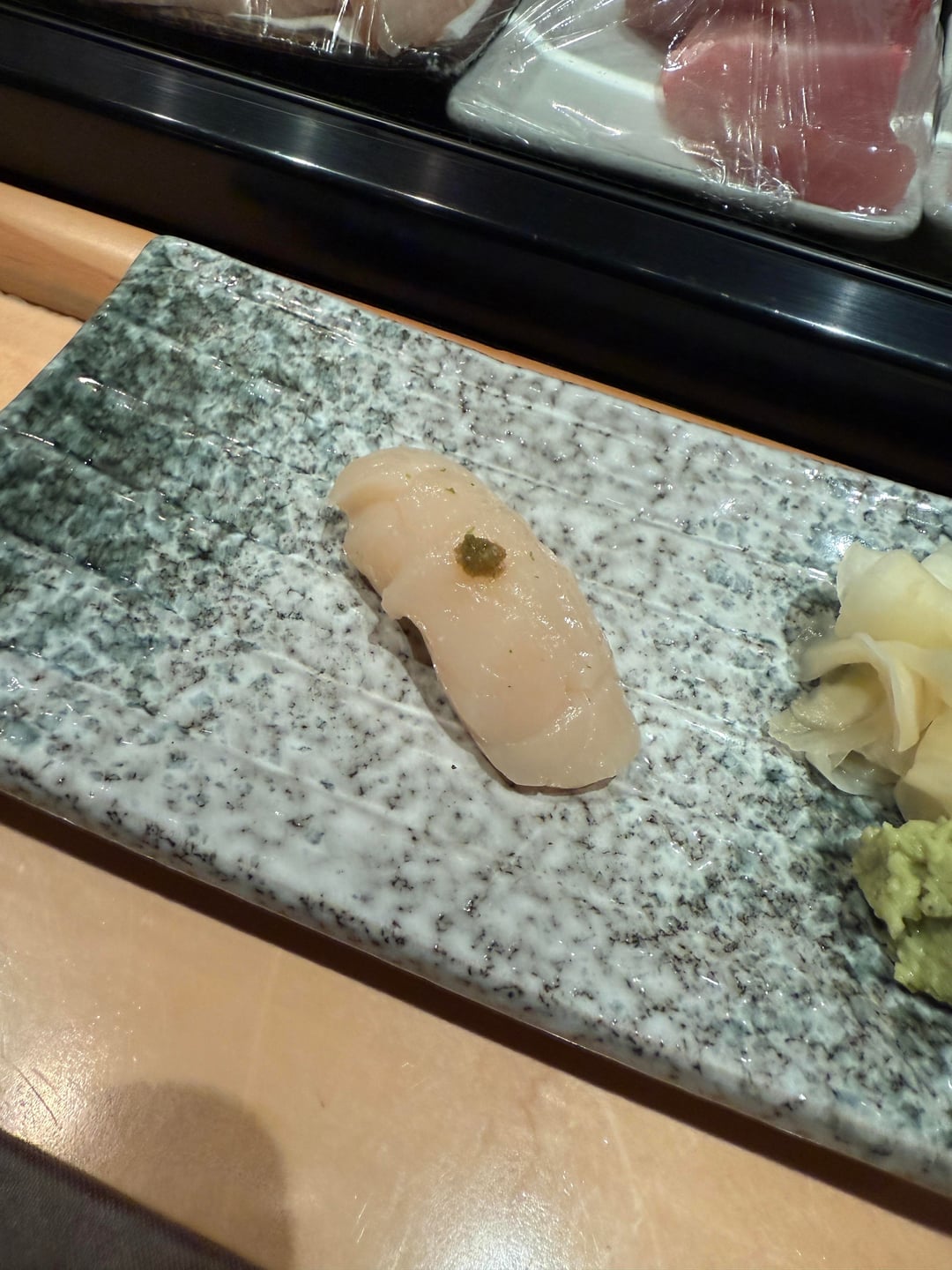 Individual Nigiri: Hotate (scallop), tai, Kinme, and Koji salmon (one of the best salmon you’ll ever eat)