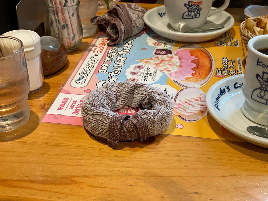 JJapan Photos I always end up making a donut out of the oshibori at Komeda Coffee December 13, 2025 I always end up making a donut out of the oshibori at Komeda Coffee by Correct_Ad_6593 Tags:Japan PhotosPhotography in Japan