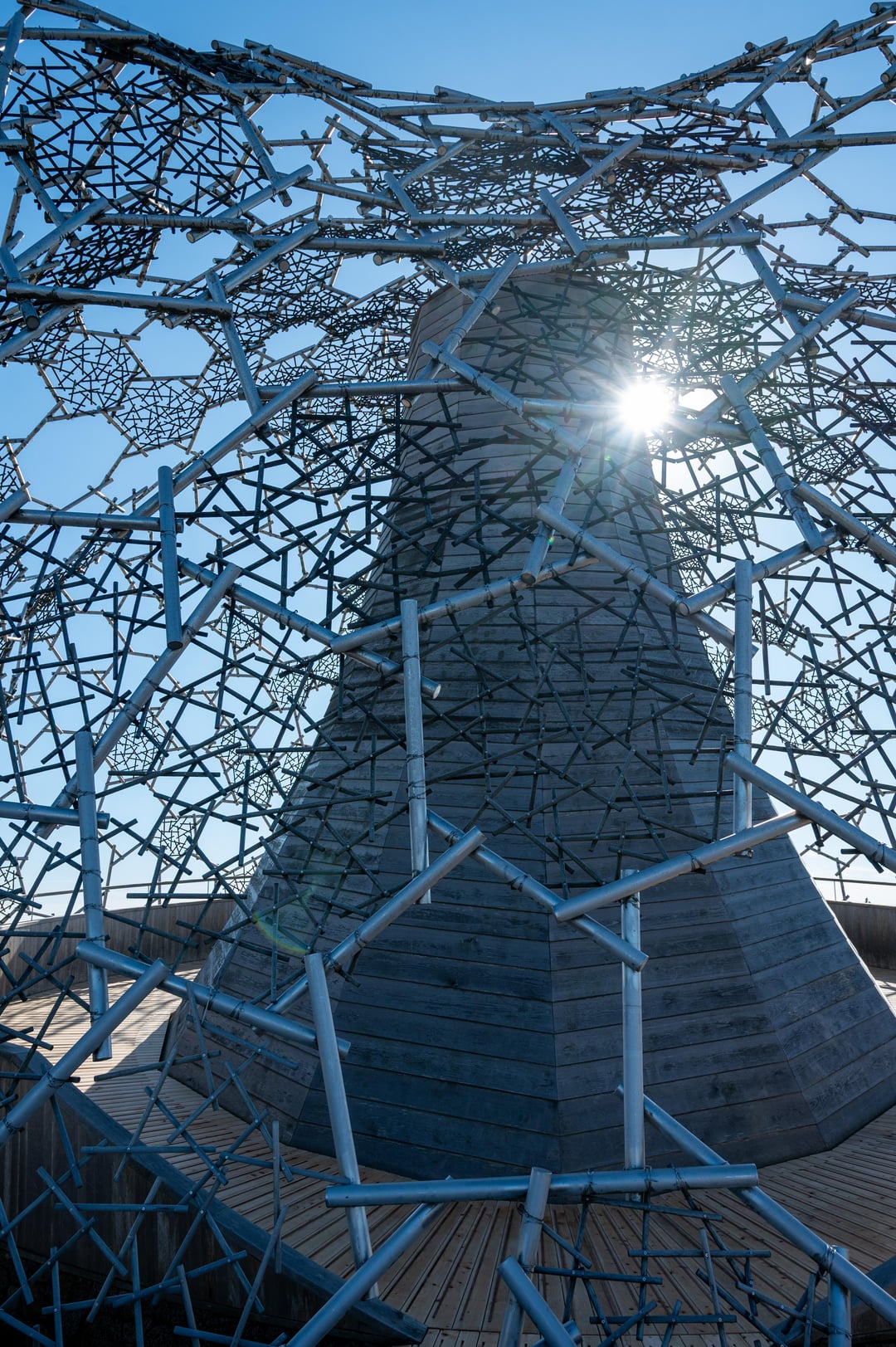 Made the trek up from Arima Onsen to the top of Mt. Rokko via the ropeway, and I swung by the observatory at the top. It's a very interesting structure, surrounded by mini art installations, but unfortunately wasn't 100% open – some parts were under repair. The second and third shots are from the interior; the top is open to let rain into the middle.