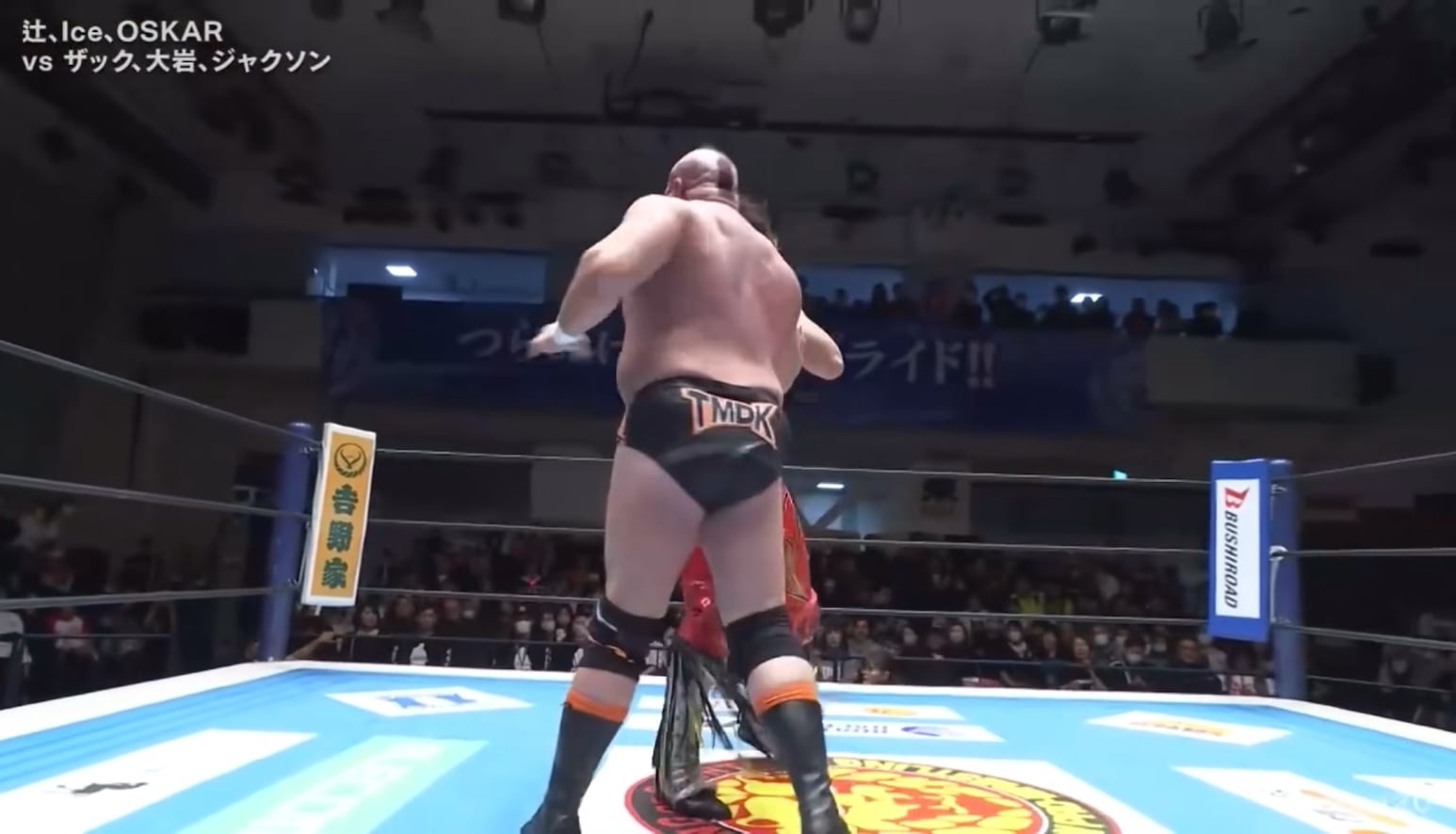 Hartley Jackson goes for a Chokeslam, but Yota Tsuji stuns him with a headbutt to set up the Gene Blaster!