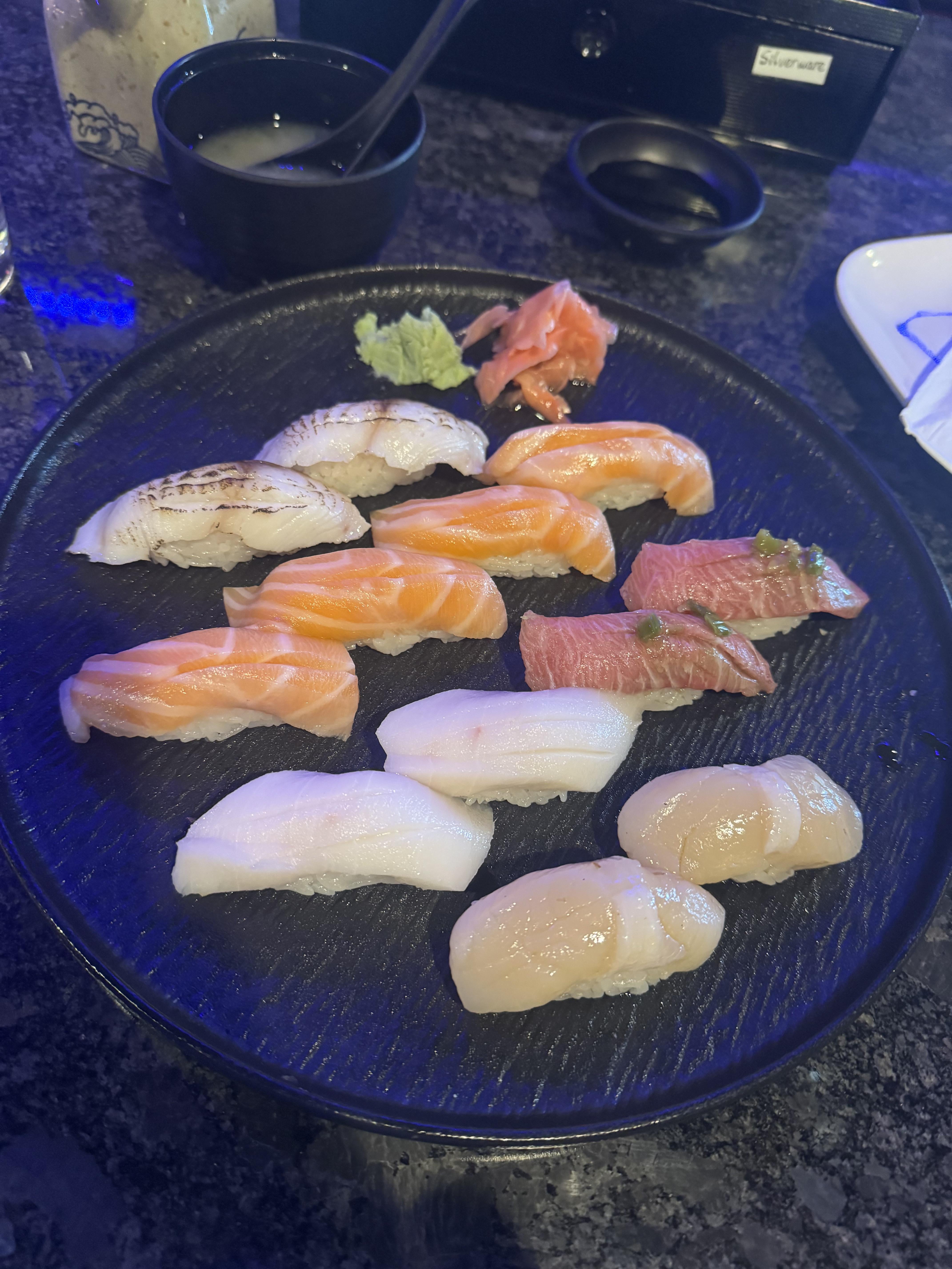 Black cod, fatty salmon, escarole, otoro, & Hokkaido scallop