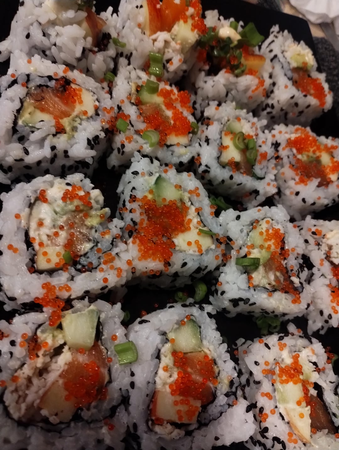 Spicy salmon rolls! I like also adding a little crisp sweet apple too. Made sides of spicy seared scallops 😊