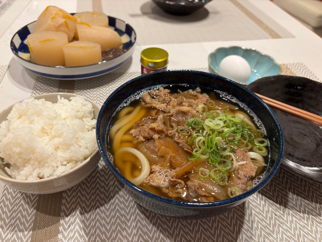 Niku udon I repurposed gyudon leftovers into and some daikon I was gonna make furofuki daikon with but got lazy and just oden-ified