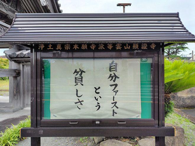 The grand prize went to “Jibun First to iu Mazushisa” (“The Poverty of ‘Me First’”), from Kensho-ji temple in Minami-Satsuma, Kagoshima Prefecture.