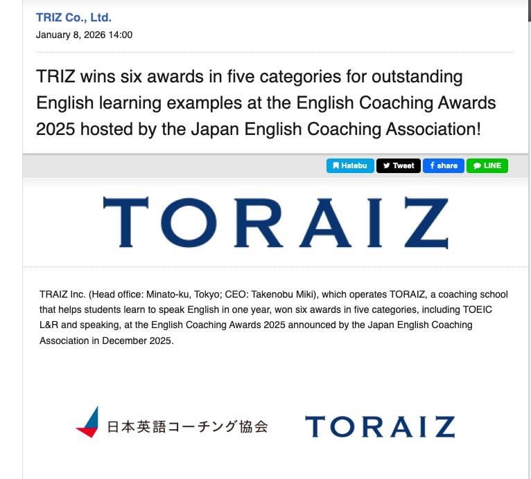 It’s not news on here that TORAIZ treats its contractors like dirt but it made me cringe to see they recently won 6 awards. On closer inspection though they gave themselves the awards as the awarding body – JELCA – was set up by the TORIAZ CEO, Takenobu Miki. Disgraceful!