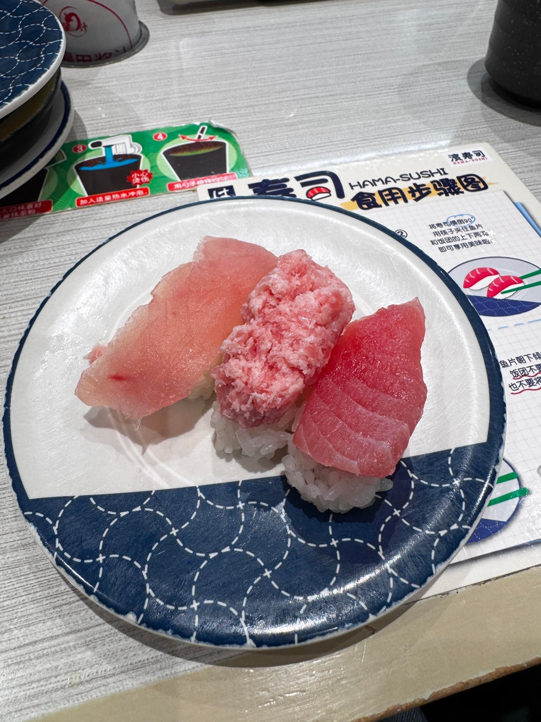 Delivery sushi did not hit any sushi cravings yesterday so ended up going to a revolving sushi chain (Hama) that comes from Japan. Pics attached are about $2 for the tuna plate, $1.30 for the salmon plate.