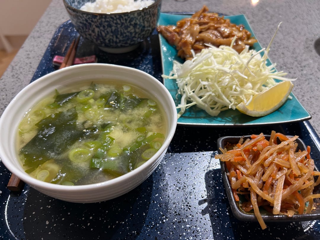 I thought I’d share my Teishoku today. I had rice, miso soup, carrot burdock salad (store bought), and pork belly shogayaki. The only thing I was disappointed by was the cabbage, it’s hard to get green cabbage around here and white cabbage doesn’t get fluffy, kinda stays as sticks, even when put in water for a half hr. The pork was delicious, really good. I saved half the rice and I think I’ll make a chahan tomorrow. Exciting stuff 🙂 Pork recipe is from “Ryuji no ‘Buzz Recipes’” channel on YouTube.