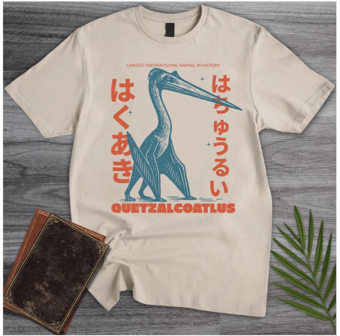 You can read the english word, Quetzalcoatlus, the largest known flying animal, a reptile from the Cretaceous period