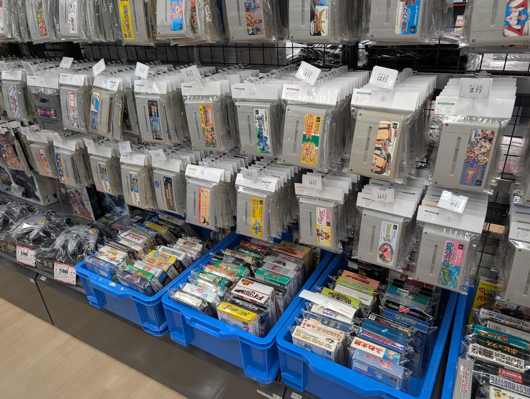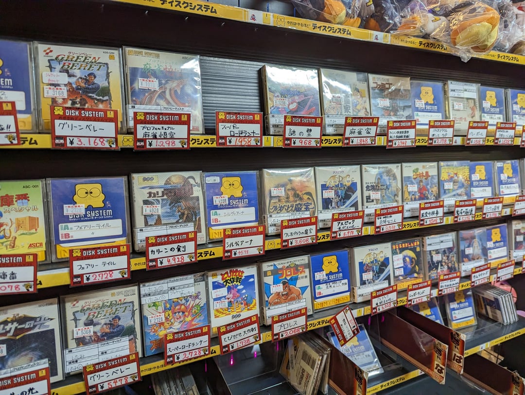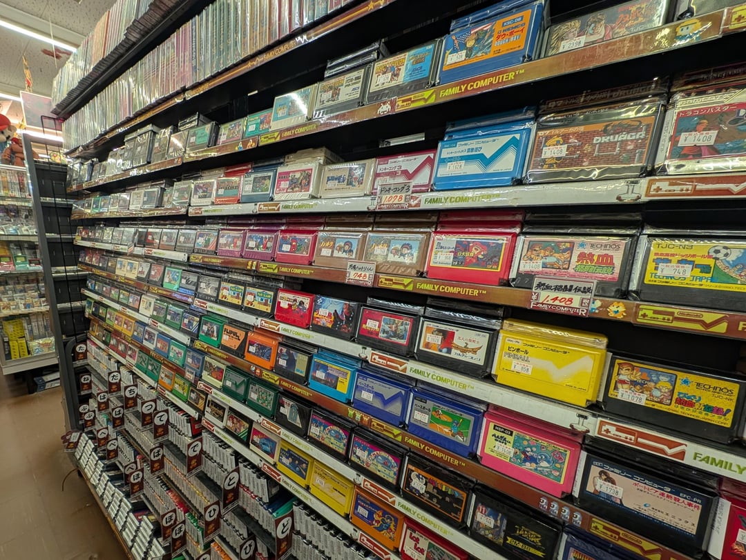 No fancy camera for these ones, I'm afraid. But one of my favorite things to do on trips to Japan is to browse retro game stores and see the colorful collections of cartridges lined up. These photos are variously from Akihabara in Tokyo (2023), Den Den Town in Osaka (2025), and a Book-Off in Kanazawa (also 2025). I particularly love to buy GameBoy games: they're usually cheap, and they are often simple enough that they can be played with minimal Japanese.