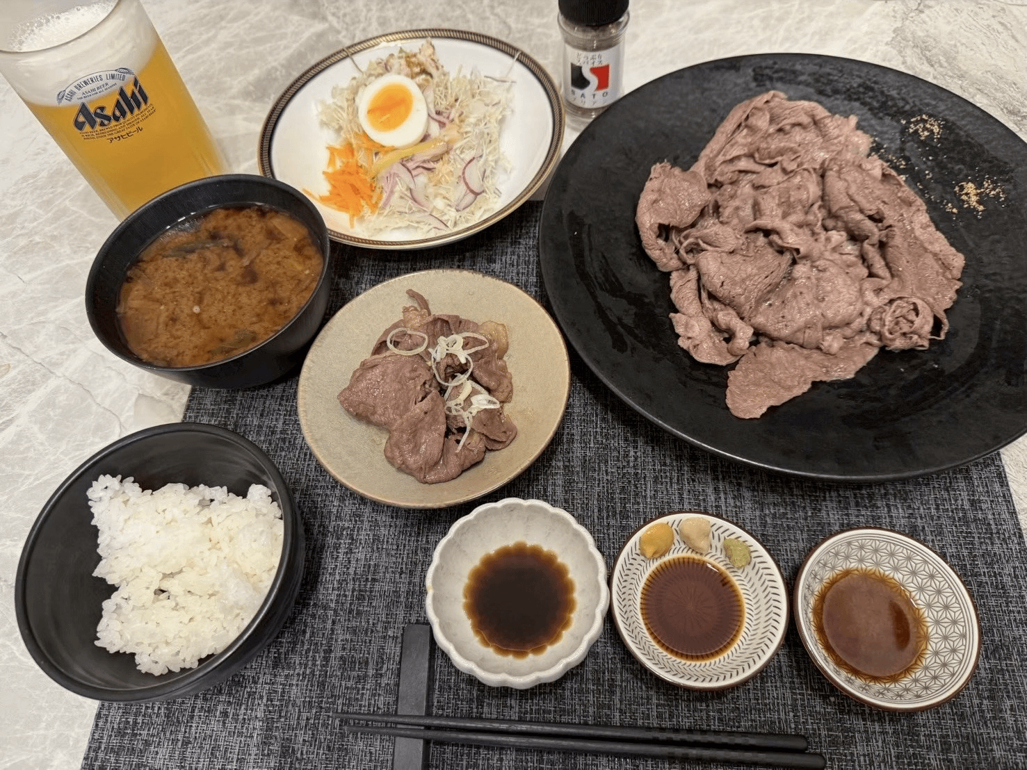 two kinds of beef, three simple sauces.