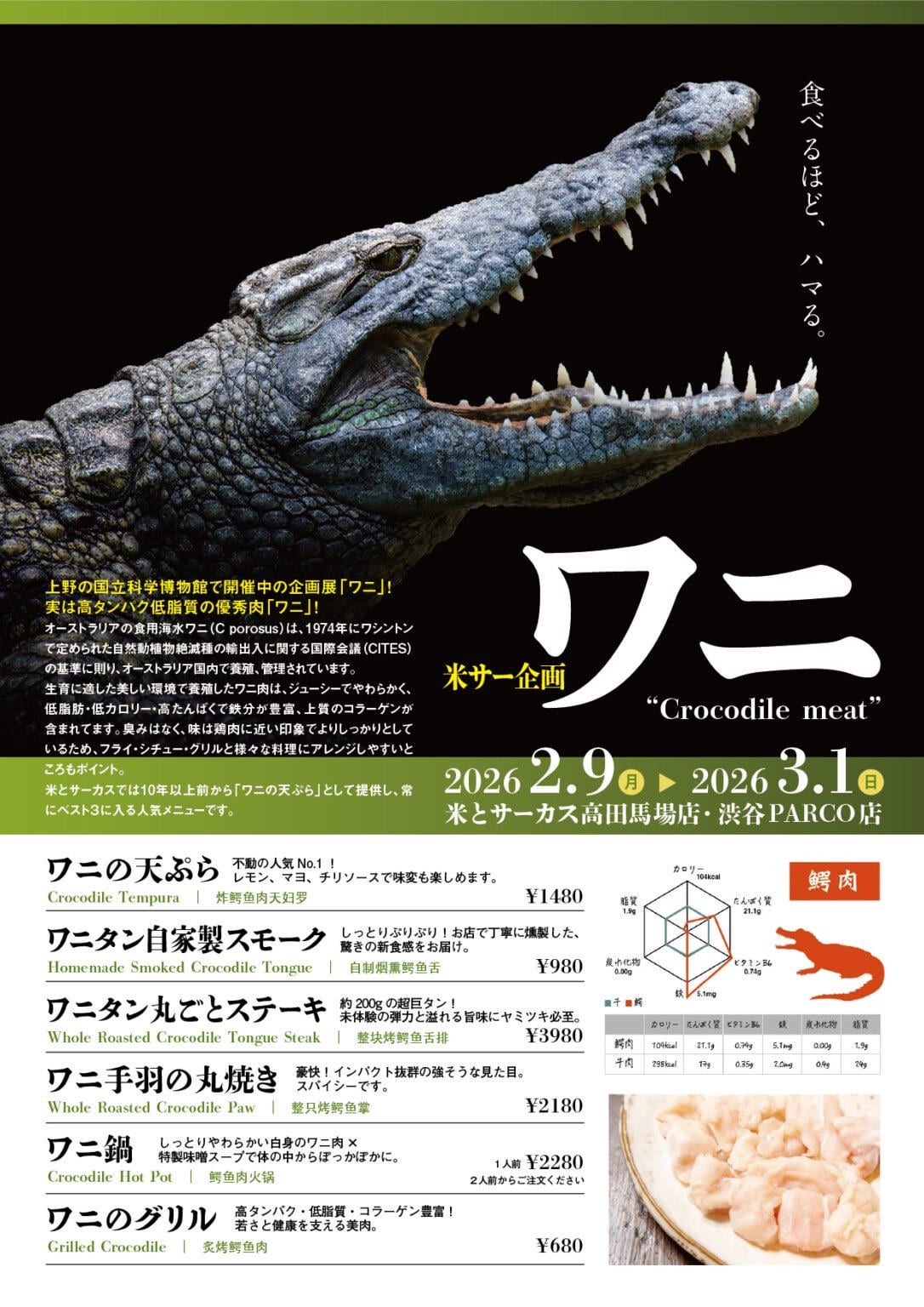 JJapanese Food Japan: Tokyo Restaurant Kome to Circus Launches Limited-Time Crocodile Festival Menu (Feb 9–Mar 1, 2026) February 13, 2026 Japan: Tokyo Restaurant Kome to Circus Launches Limited-Time Crocodile Festival Menu (Feb 9–Mar 1, 2026) by 3kheng Tags:Japanese CuisineJapanese Food