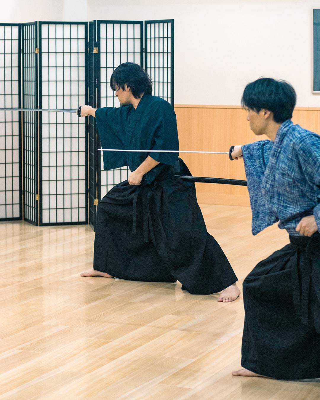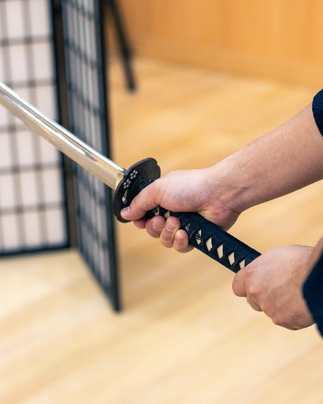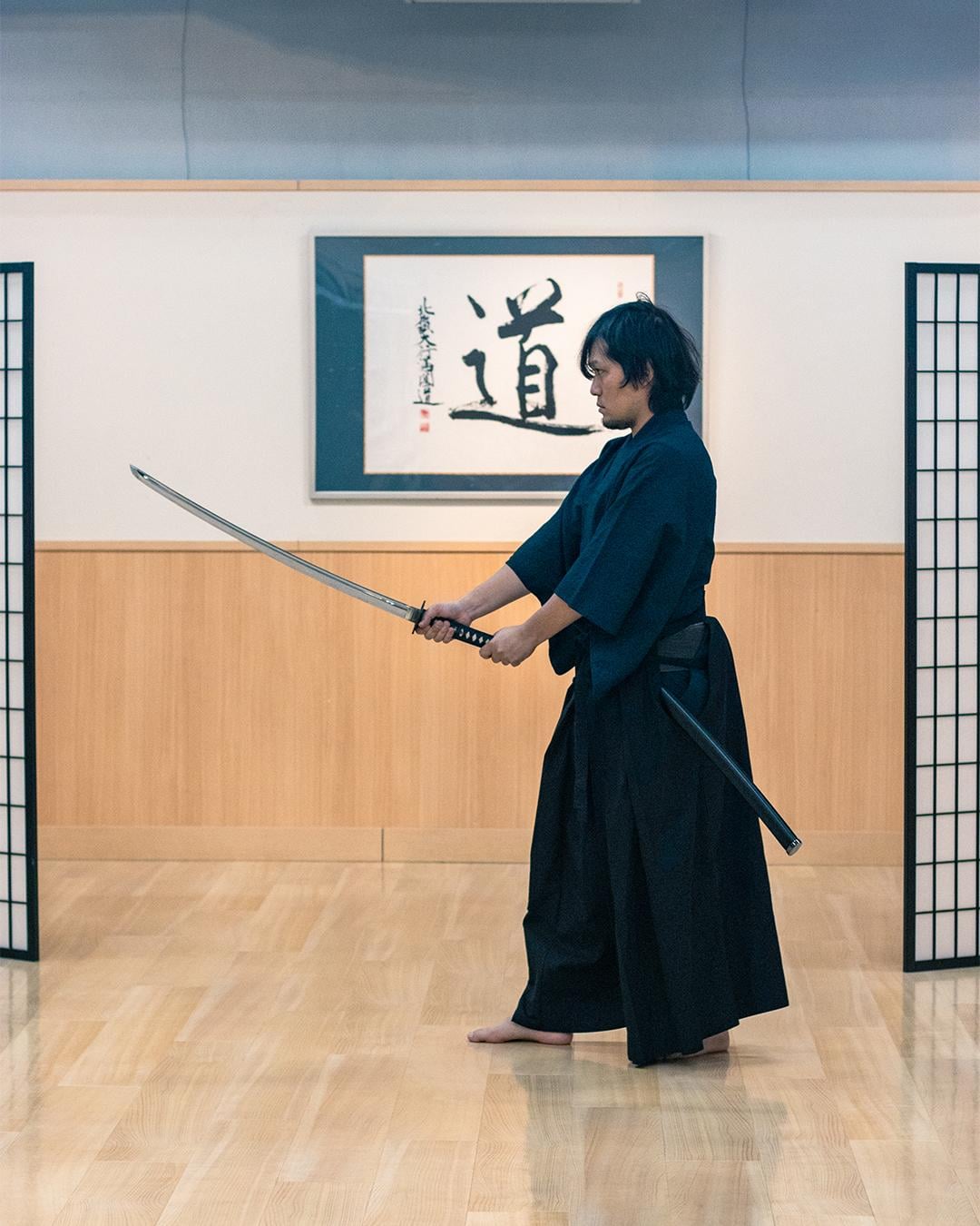 A professional sword-fighting instructor who also works as a film action director will thoroughly and carefully teach you how to greet like a samurai, how to hold a sword, how to cut, and how to perform a katana.