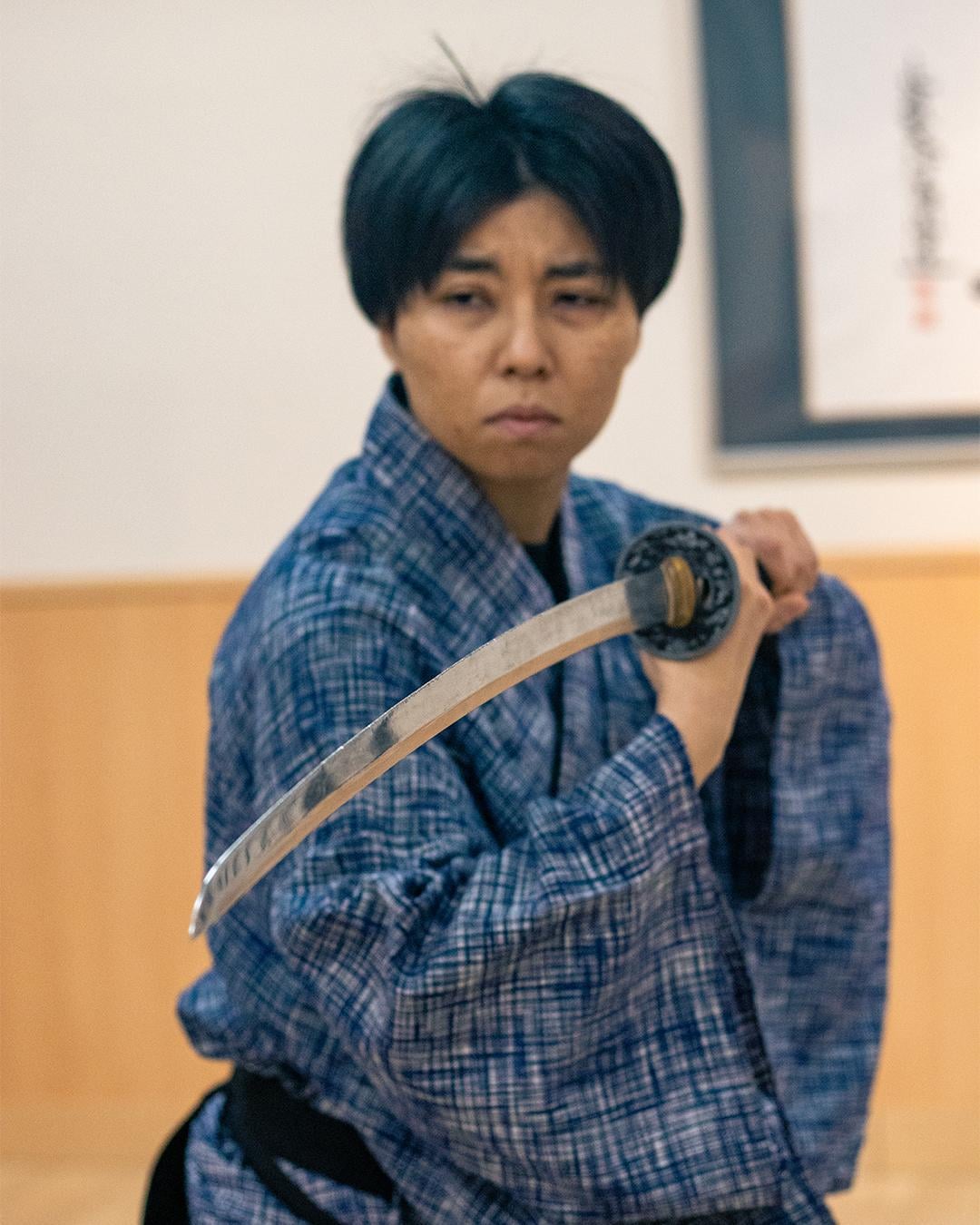 This is an activity spot where you can experience being a samurai while wearing a kimono and holding a sword.