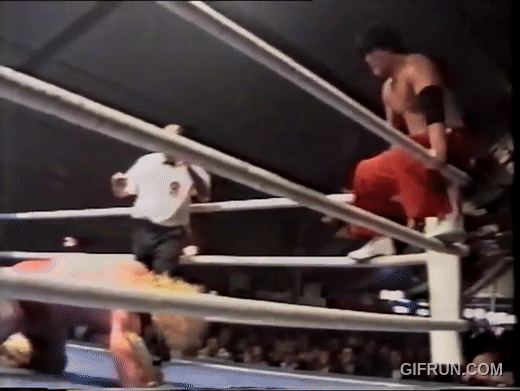 Tenzan hits his signature Mongolian Chop while on excursion to Europe in 1993