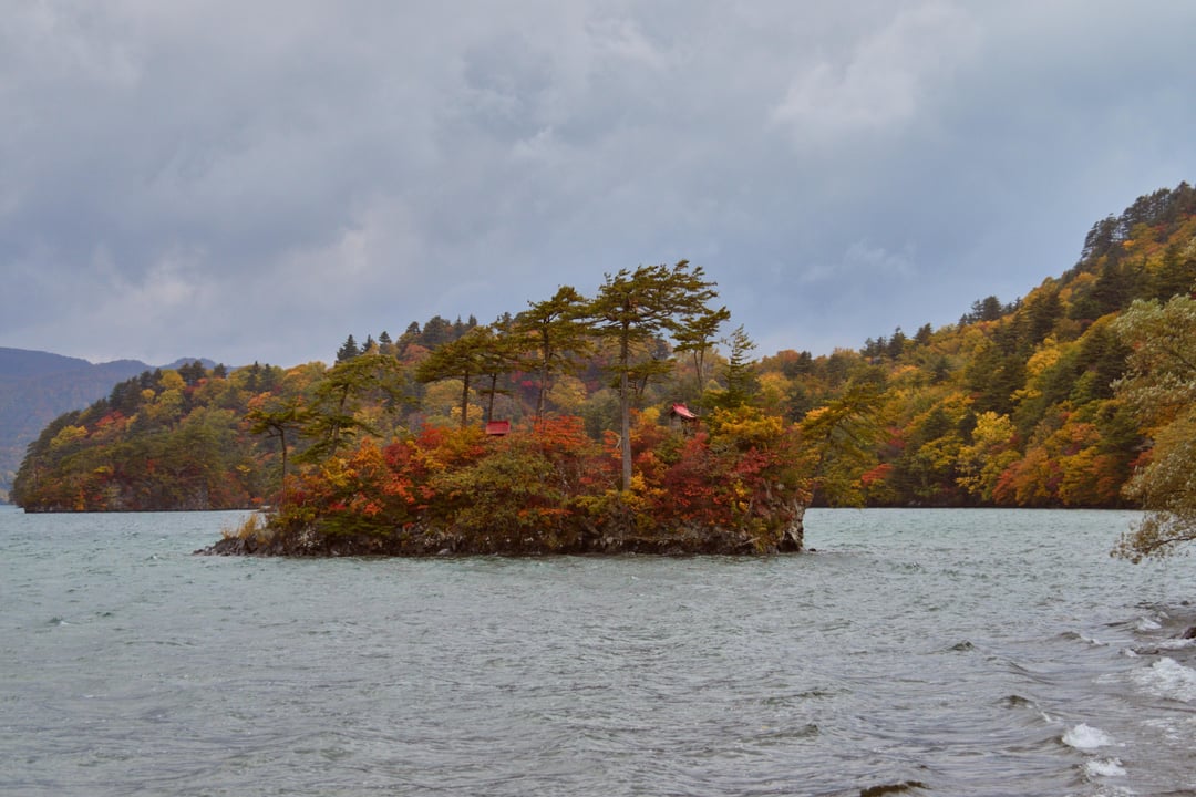 Lake Towada is one of Japan's top autumn foliage destinations. Unfortunately, the weather was miserable, and the cruise was grounded for 3 or 4 days. The interiors of the lake are said to be the most scenic, but the shores weren't too bad either.
