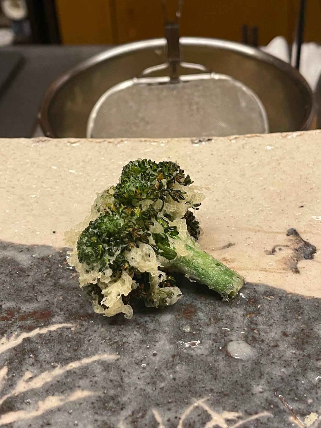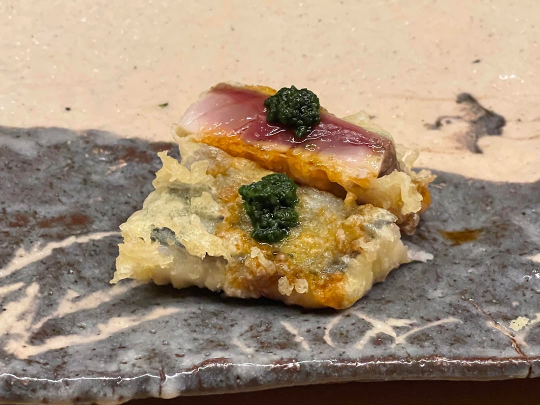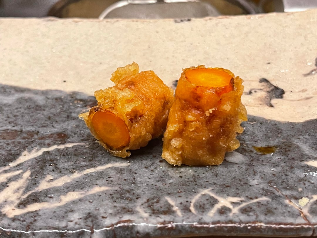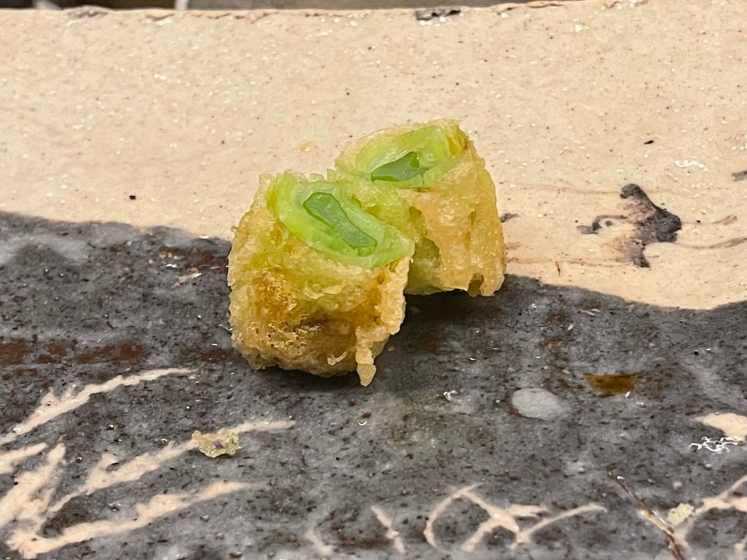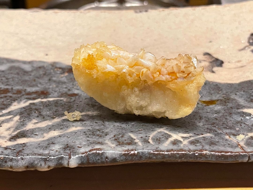 Tempura Koizumi is a 2 michelin starred and Tabelog Bronze restaurant in Kanazawa focusing on the art of tempura with ingredients from the Noto Peninula region. The batter is light and crisp using 100% safflower oil .