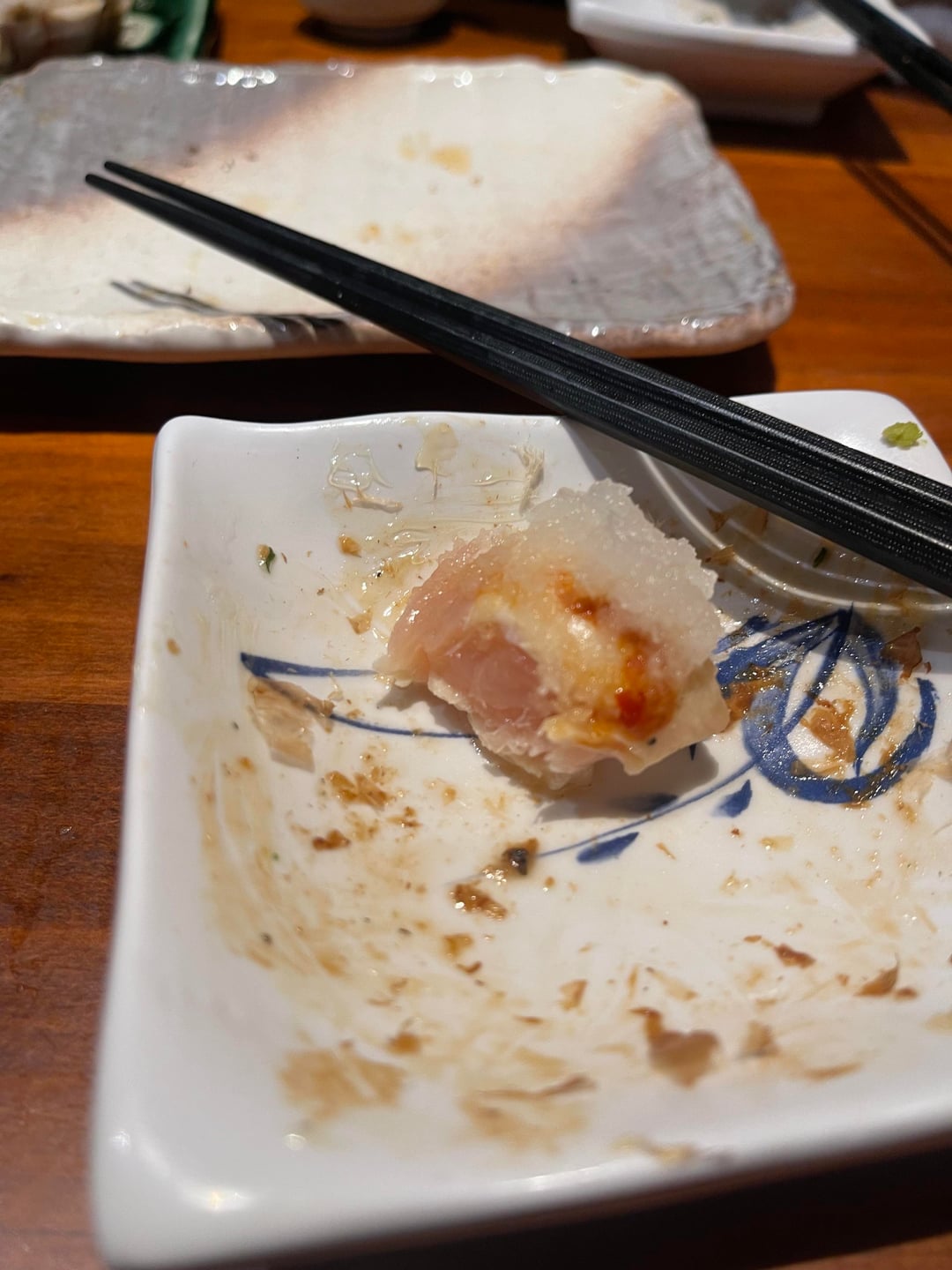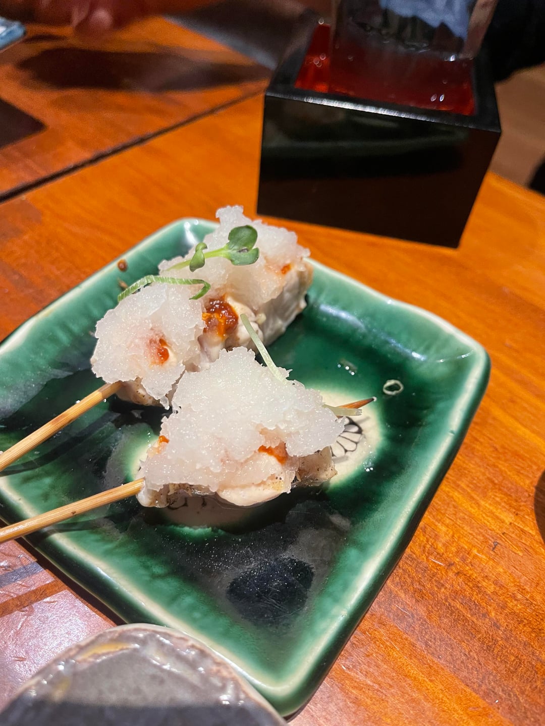 My friend described this chicken dish at their local izakaya as 'very fresh' which got my spidey sense tingling. Took a lil nibble and couldn't do it. It did look good on the outside though.