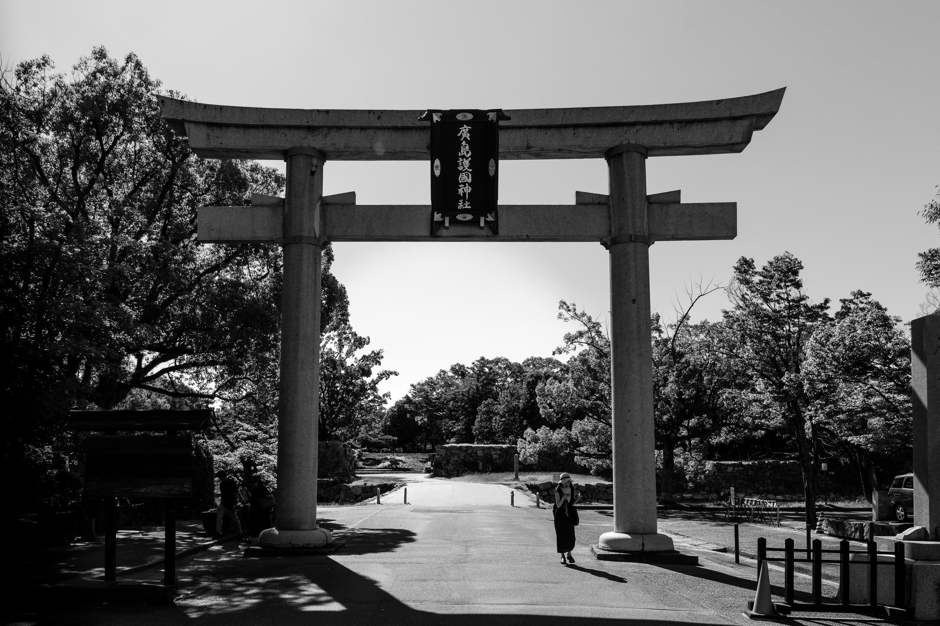The torii at Hiroshima Gokoku Shrine stands quietly in the summer heat, marking the threshold between the city’s movement and the calm of the shrine grounds. The light was sharp that day, casting long shadows and giving the stone a soft glow. A simple moment, but one that captures the quiet rhythm of Hiroshima in midsummer.