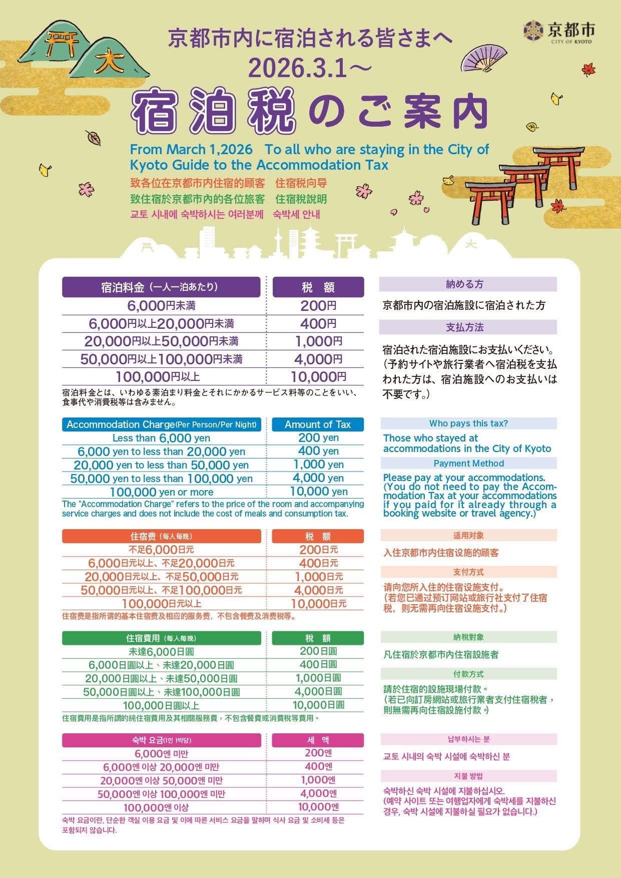 Kyoto accommodation tax going into effect tomorrow, March 1.