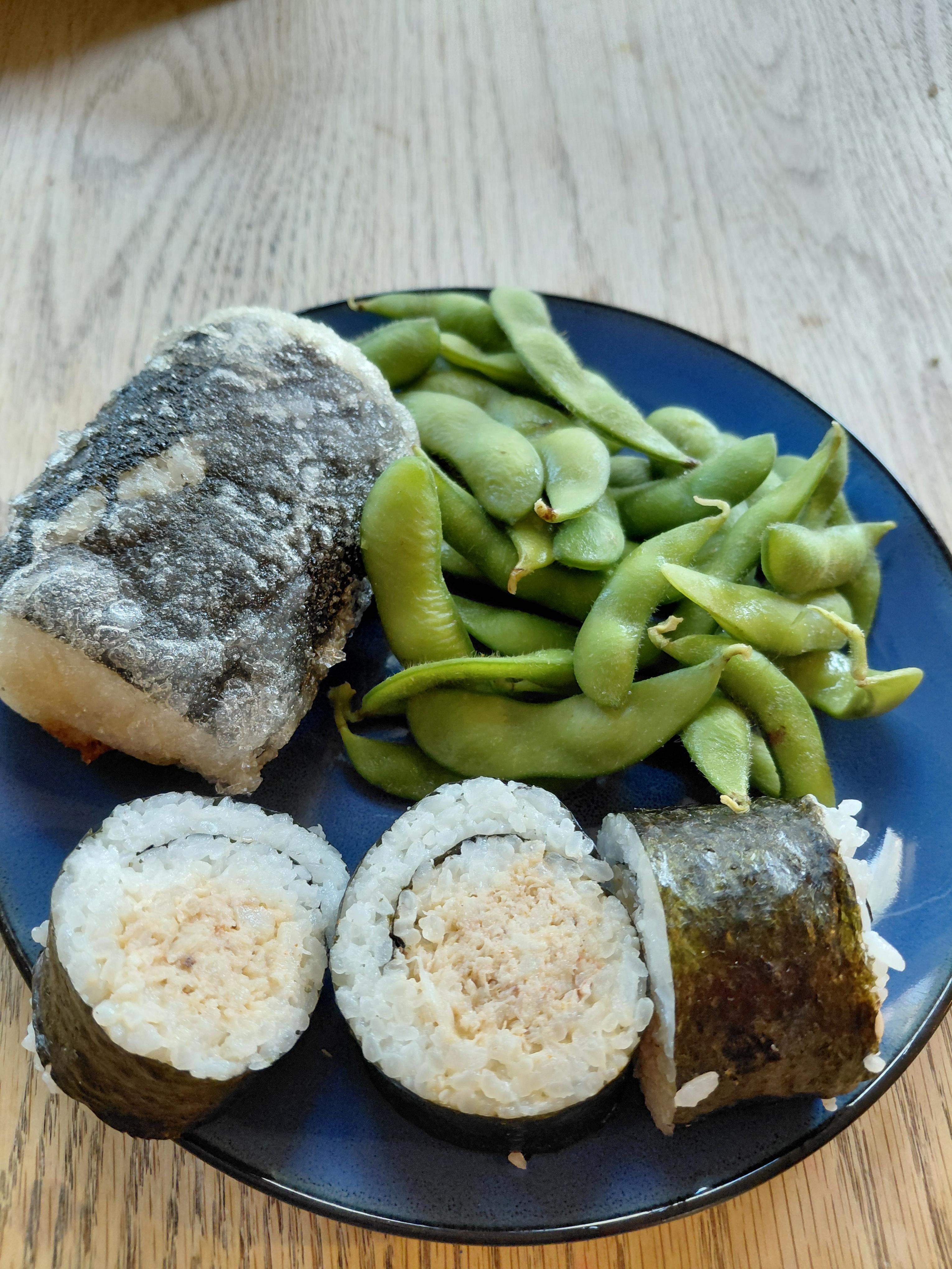 I made my kids some (real) Crab rolls. I decided to fry half in rice paper for some variety. Not very attractive but they enjoyed them very much. I dont have one of those rolly things, so it was a little freestyle action. Dad win of the day.