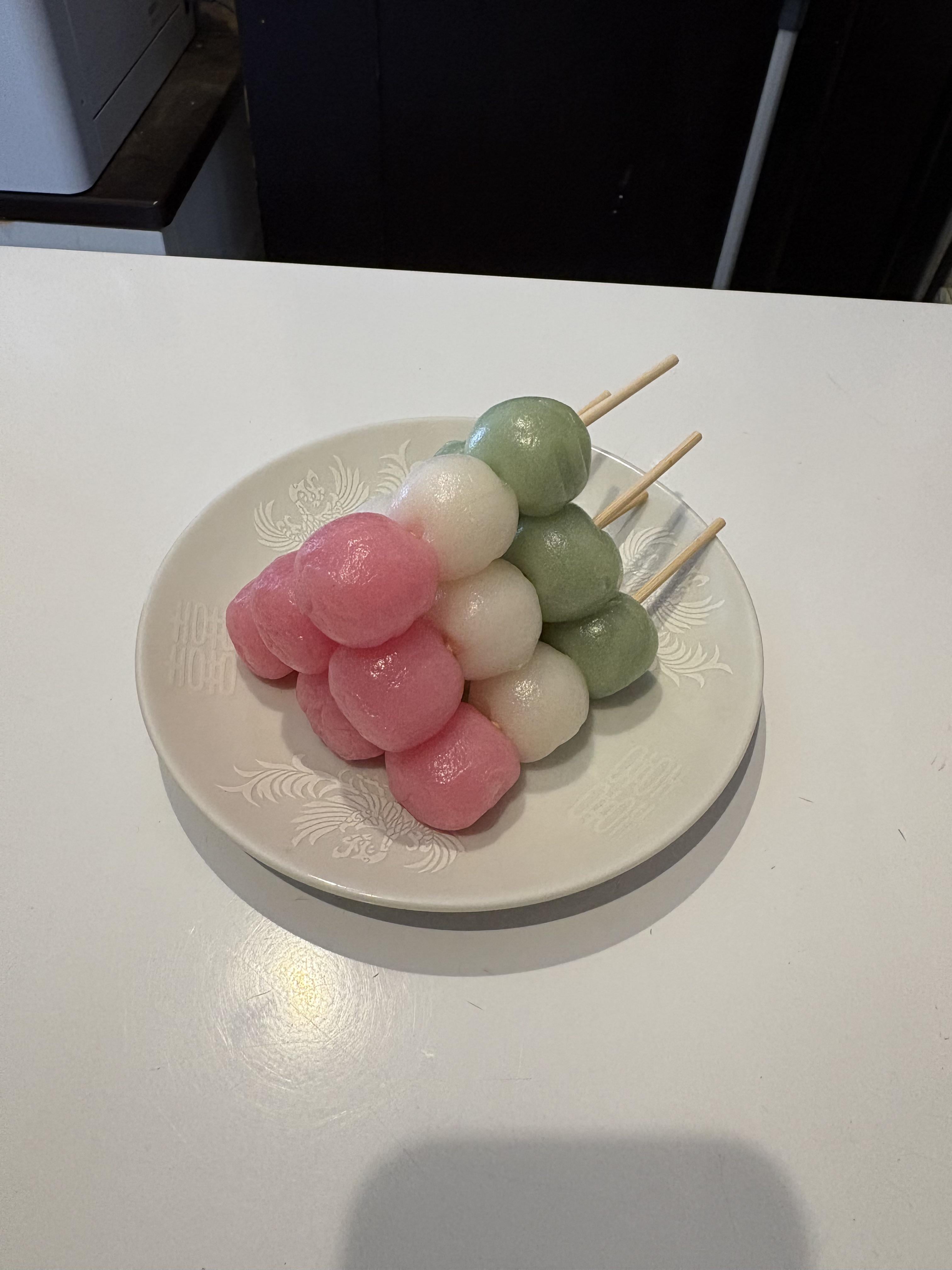 Grabbed some sanshoku dango from the supermarket today! Pink, green, and white – super cute and totally gives off spring hanami (cherry blossom viewing) vibes 🌸