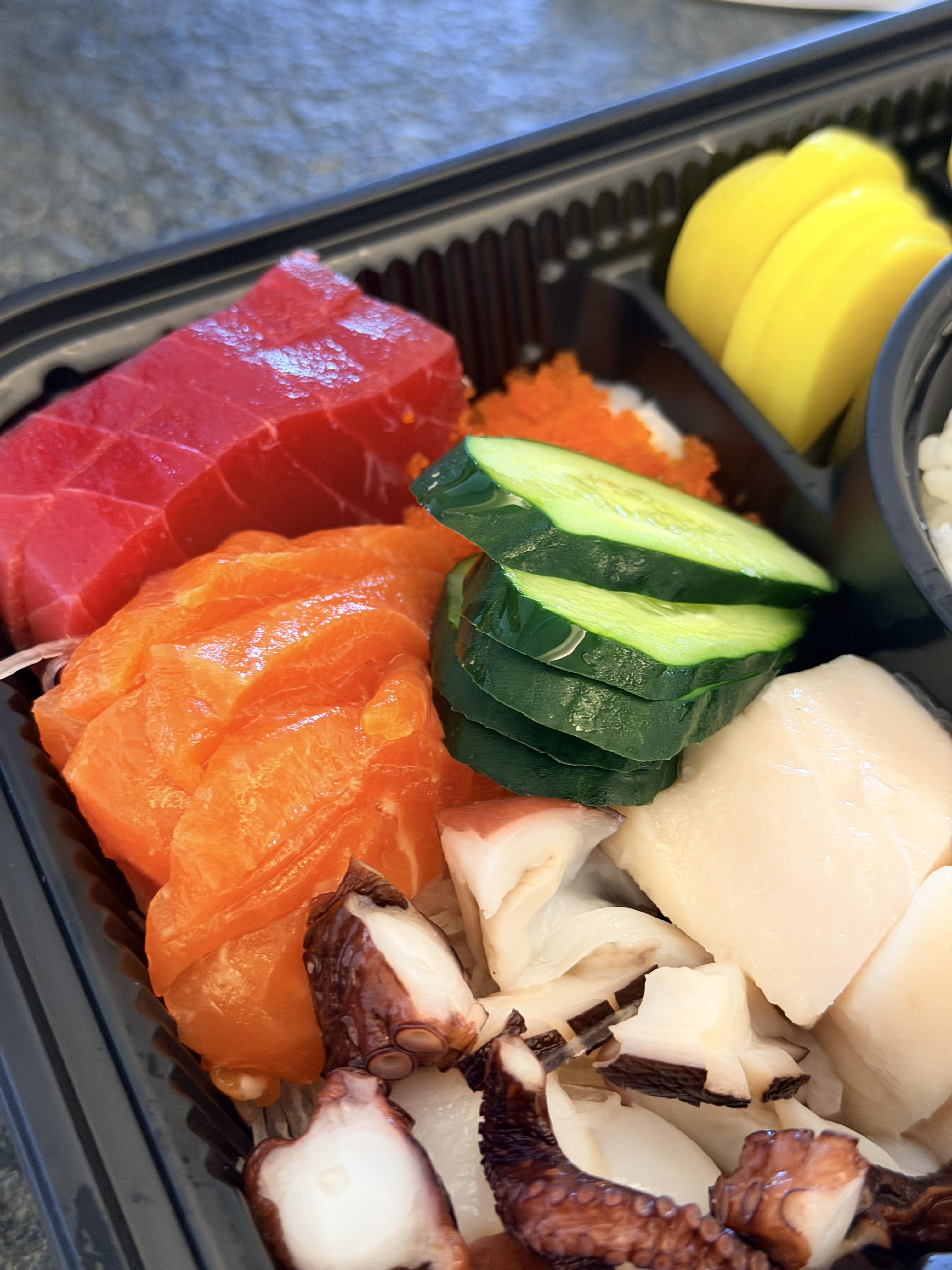 SSushi My partner’s choice gave me serious envy today March 4, 2026 Salmon, Tuna, Butterfish, Octopus and Prawn Roe on sushi rice by Super-Mongoose2892 Tags:Sushi