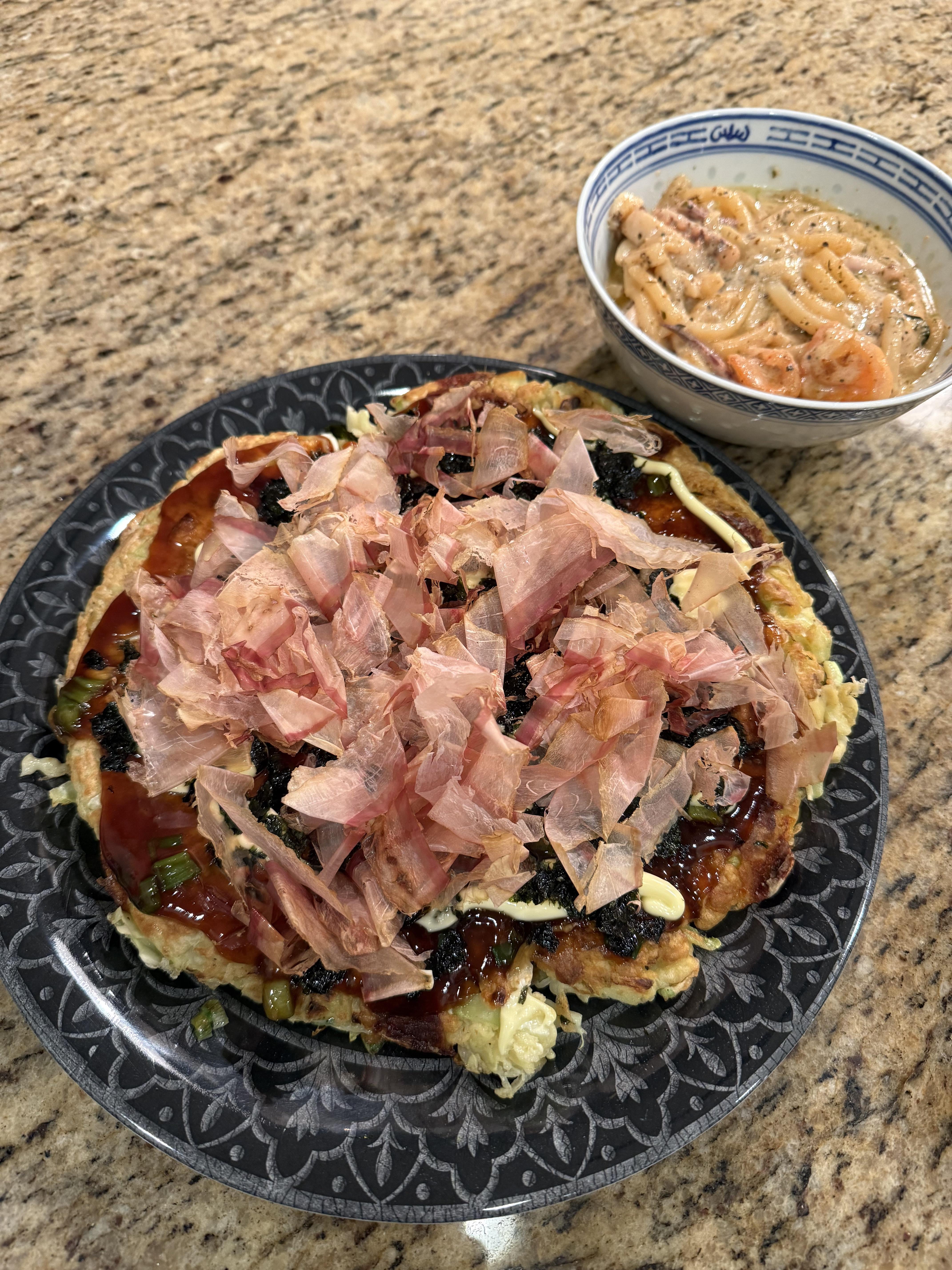 JJapanese Food Homemade okonomiyaki and seafood udon March 15, 2026 First time making okonomiyaki and it tasted amazing (very filling)! The udon was good too 🙂 by Neko_shii Tags:Japanese CuisineJapanese Food