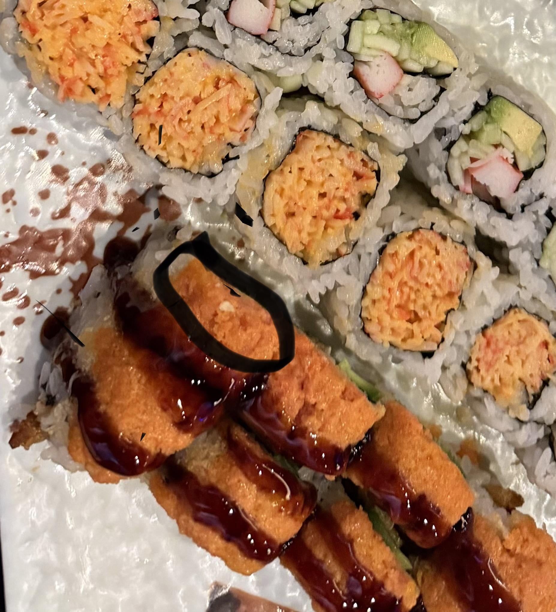 can someone please tell me what that orange stuff on top is the part I have circled I recently got it this roll and it had it, I hated it I ended up taking it off and easting the roll with out it, It had a fatty bad taste.