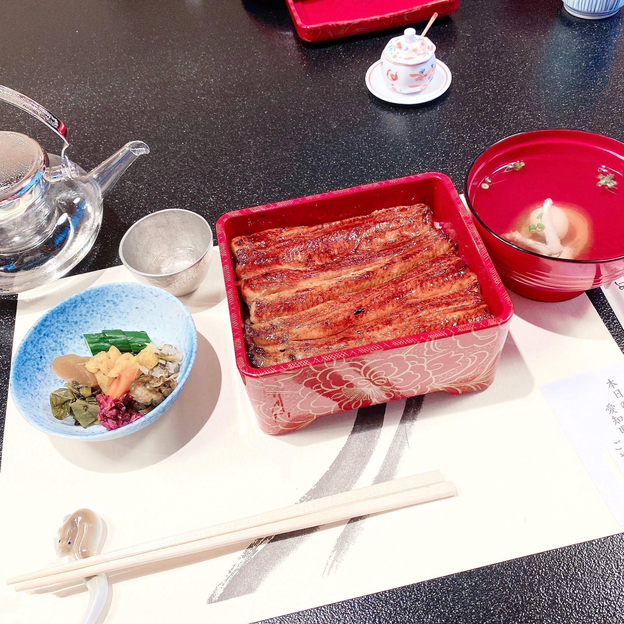 I wanted to share this beautiful Unaju I ate. It's grilled eel coated with a sweet soy-based sauce, served over rice in a traditional red lacquered box. The shiny box is so pretty, right?